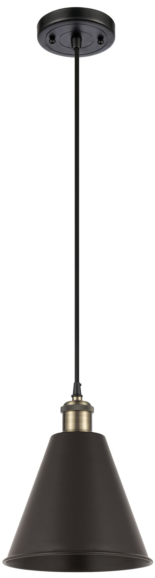 Ballston Cone 8"W Black Brass Corded Mini Pendant With 8" Shade B