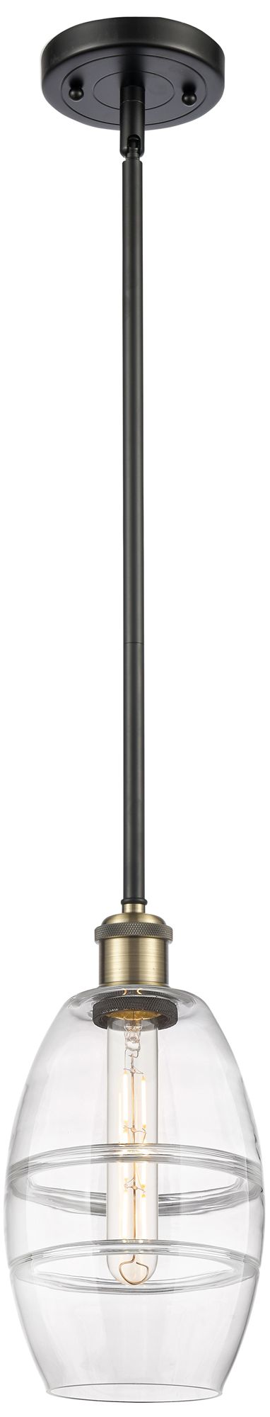 Ballston Vaz 5.88"W Black Antique Brass Stemmed Mini Pendant w/ Clear
