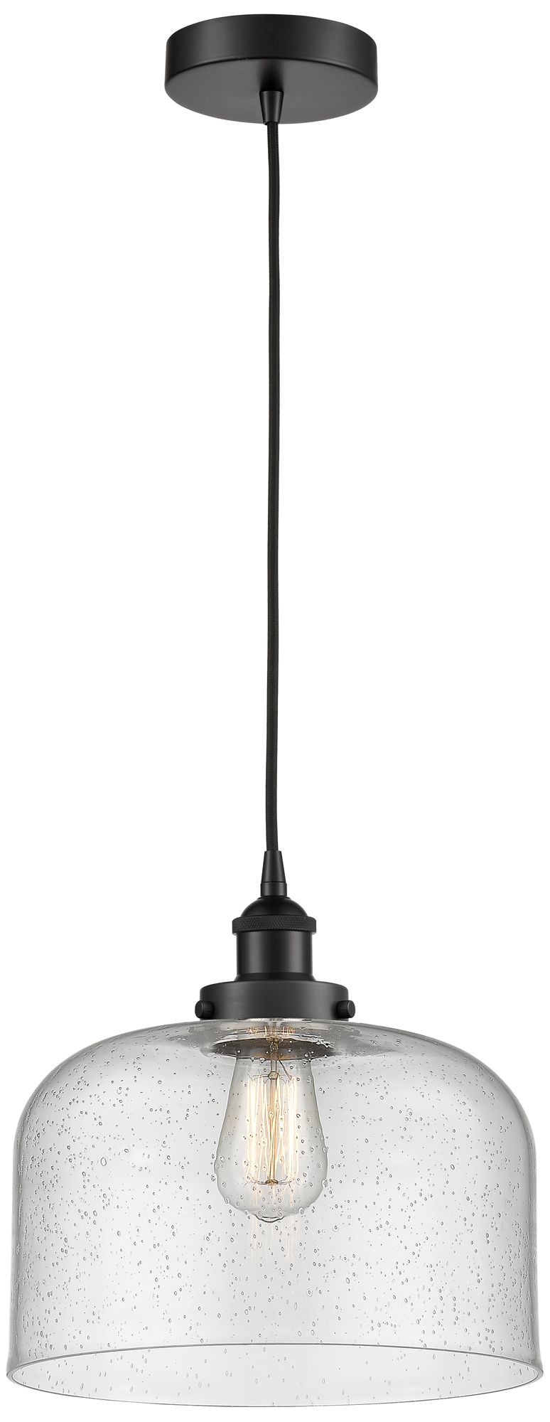 Bell 12" Matte Black Mini Pendant w/ Seedy Shade