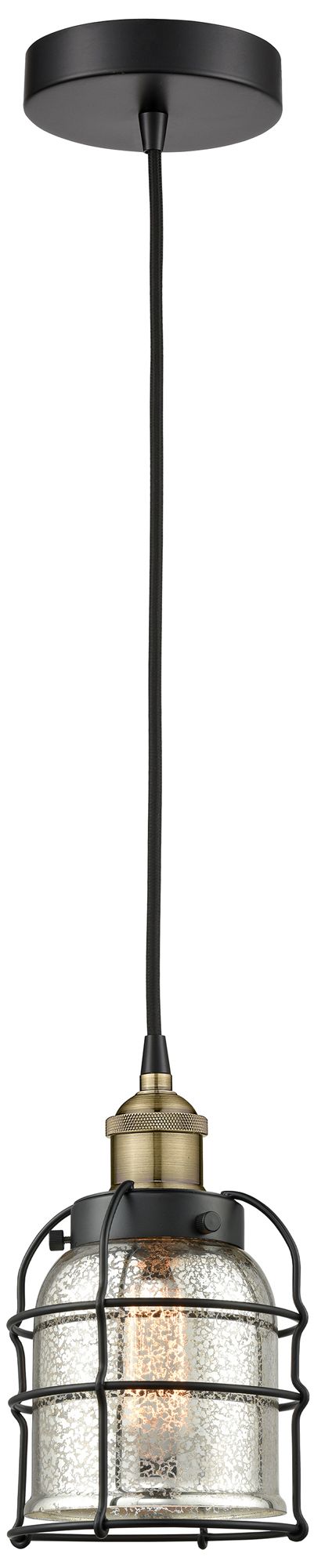 Bell Cage 6"W Black Brass Corded Mini Pendant w/ Silver Mercury Shade