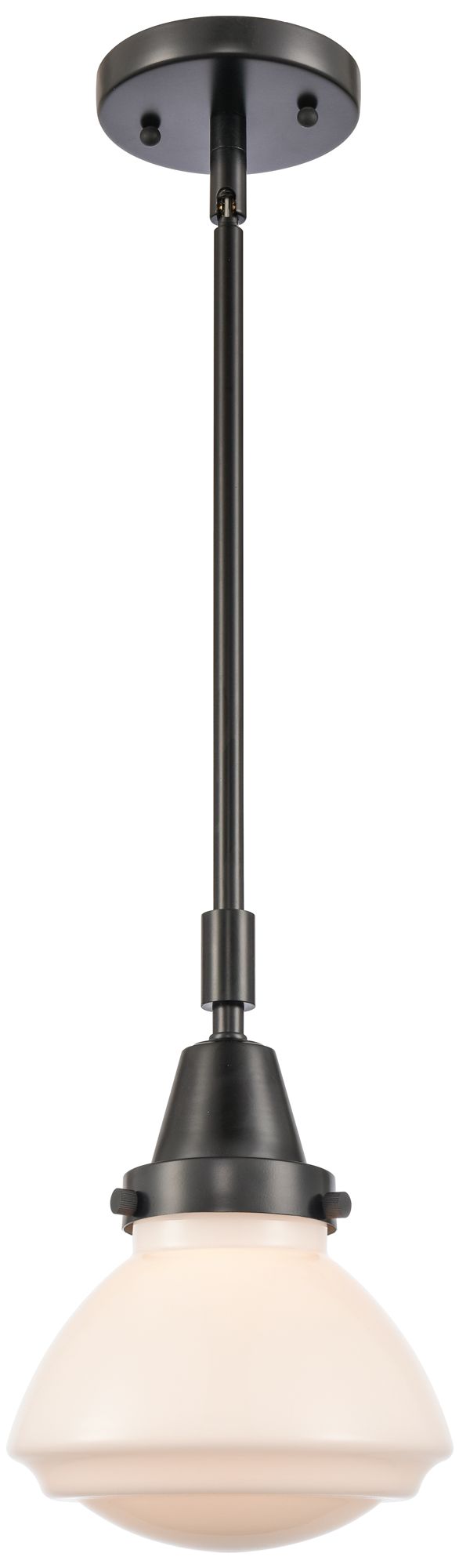 Caden Olean 6.75" Wide Matte Black Stem Hung Mini Pendant w/ White Sha