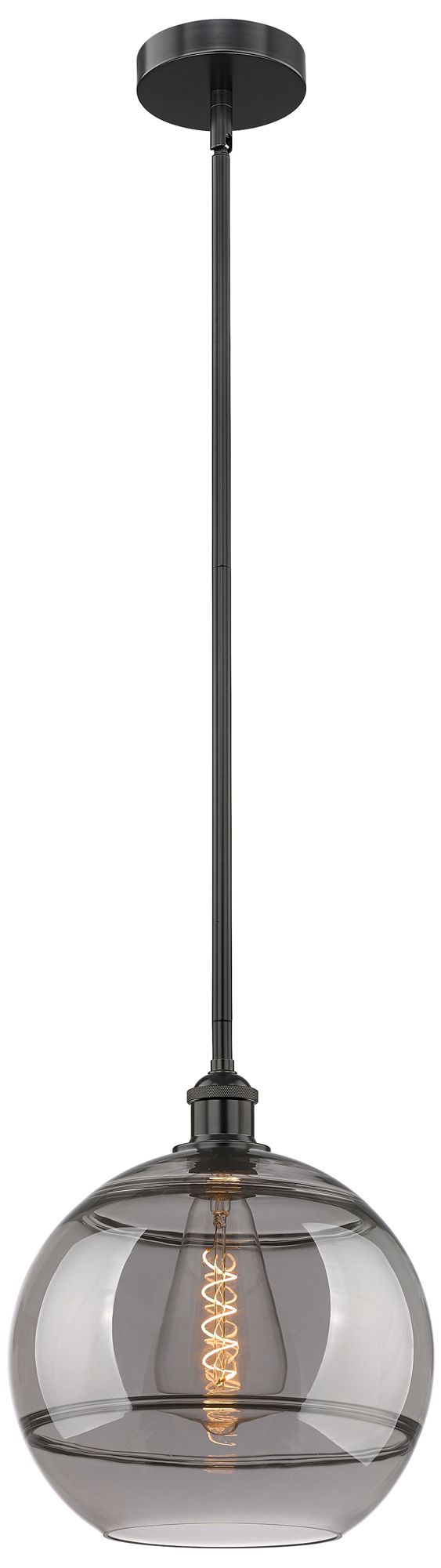 Edison Rochester 12"W Matte Black Stemmed Mini Pendant w/ Light Smoke