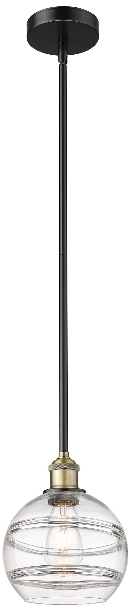 Edison Rochester 8"W Black Brass Stemmed Mini Pendant w/ Clear Shade