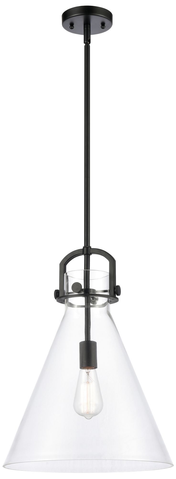 Newton Cone 14" Wide Matte Black Stem Hung Pendant With Clear Shade