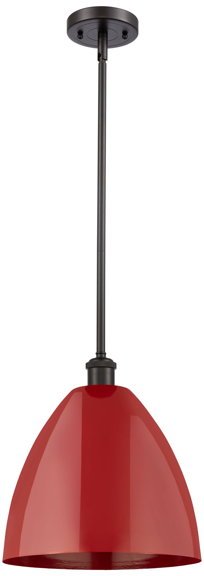 Plymouth Dome 12" Wide Oil Rubbed Bronze Stem Hung Pendant w/ Red Shad