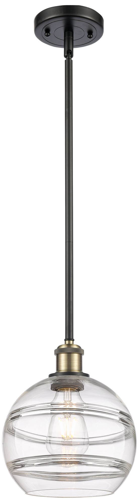 Ballston Rochester 8"W Black Brass Stemmed Mini Pendant w/ Clear Shade
