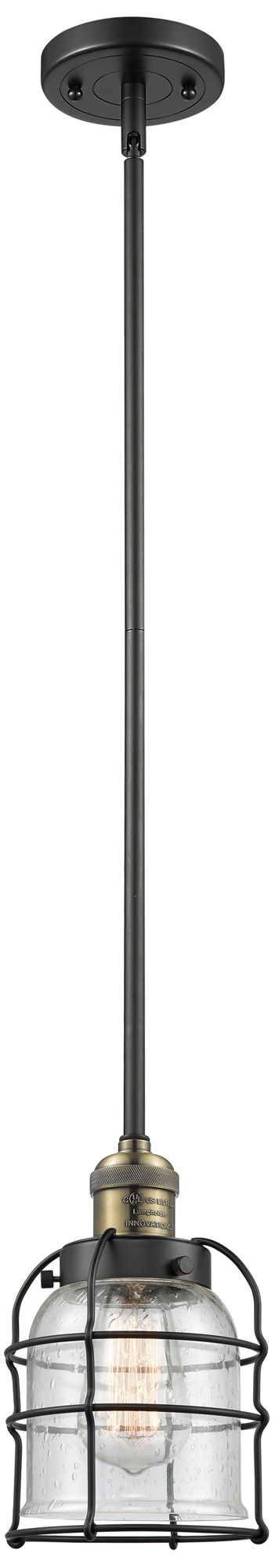 Bell Cage 6" Black Antique Brass Mini Pendant w/ Seedy Shade