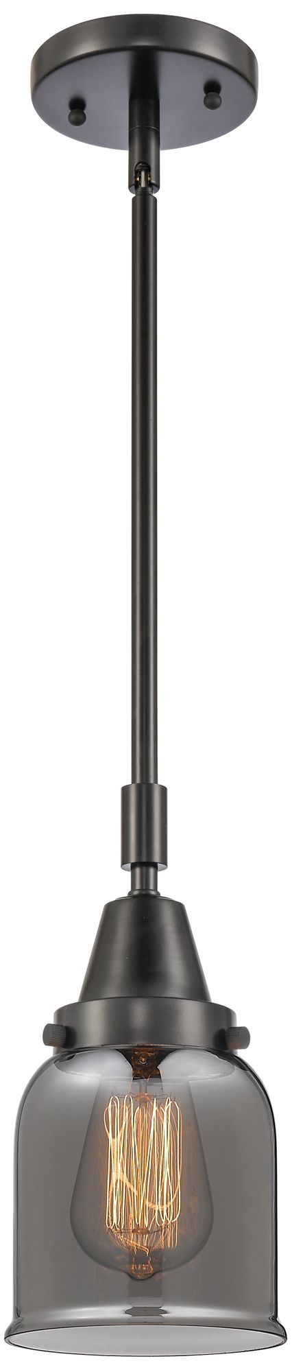 Caden Bell 5" Wide Matte Black Stem Hung Mini Pendant w/ Plated Smoke