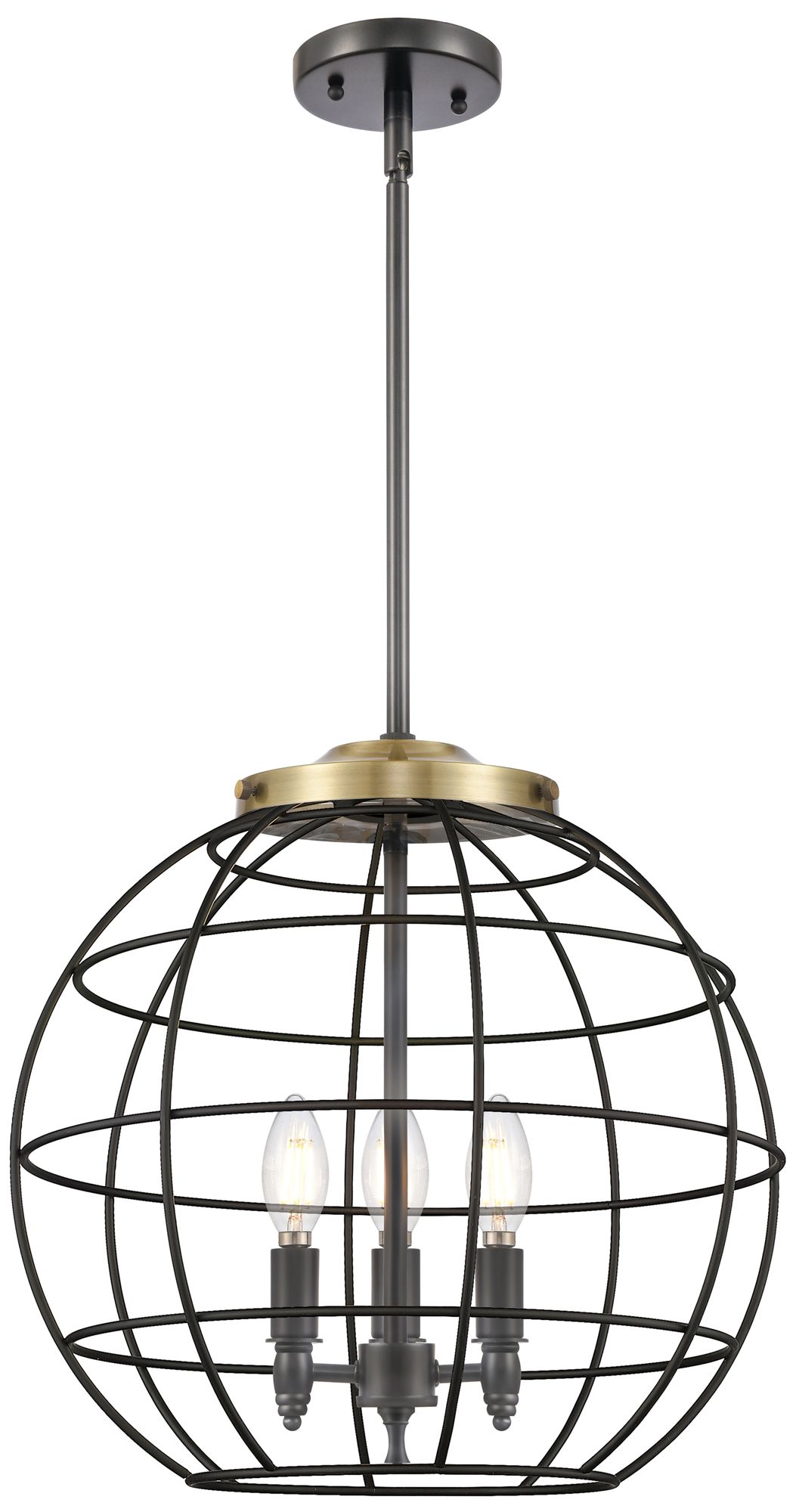 Lake Placid 16"W 3 Light Black Brass Stem Hung Pendant With Black Shad