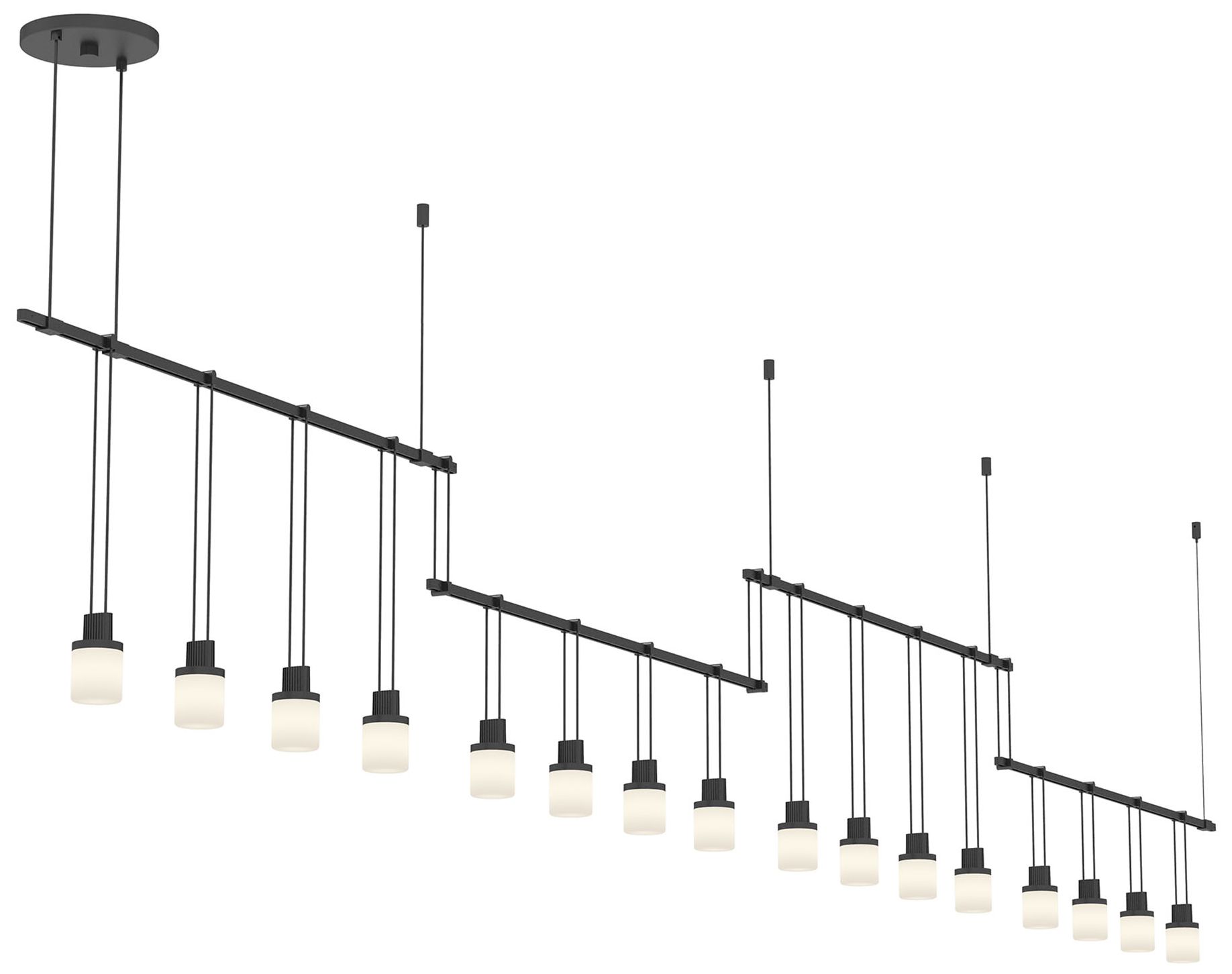 Suspenders 36" 4-Bar Satin Black Offset Linear Pendant With Drum Lumin