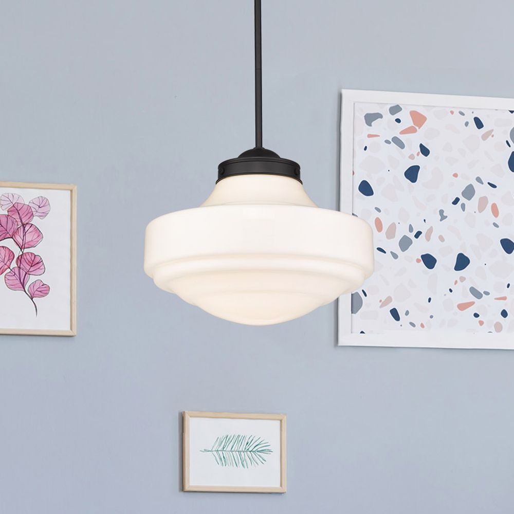 Golden Lighting Ingalls 16" Black and Vintage Milk Glass Pendant Light