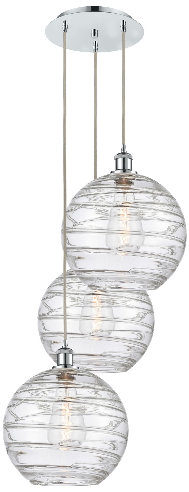 Athens 18.75"W 3 Light Polished Chrome Multi-Pendant w/ Deco Swirl Sha