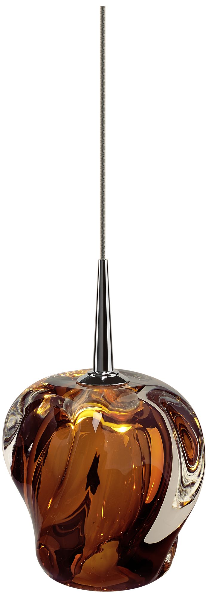 Aurora 4 1/2" Wide Chrome Amber Art Glass LED Mini Pendant