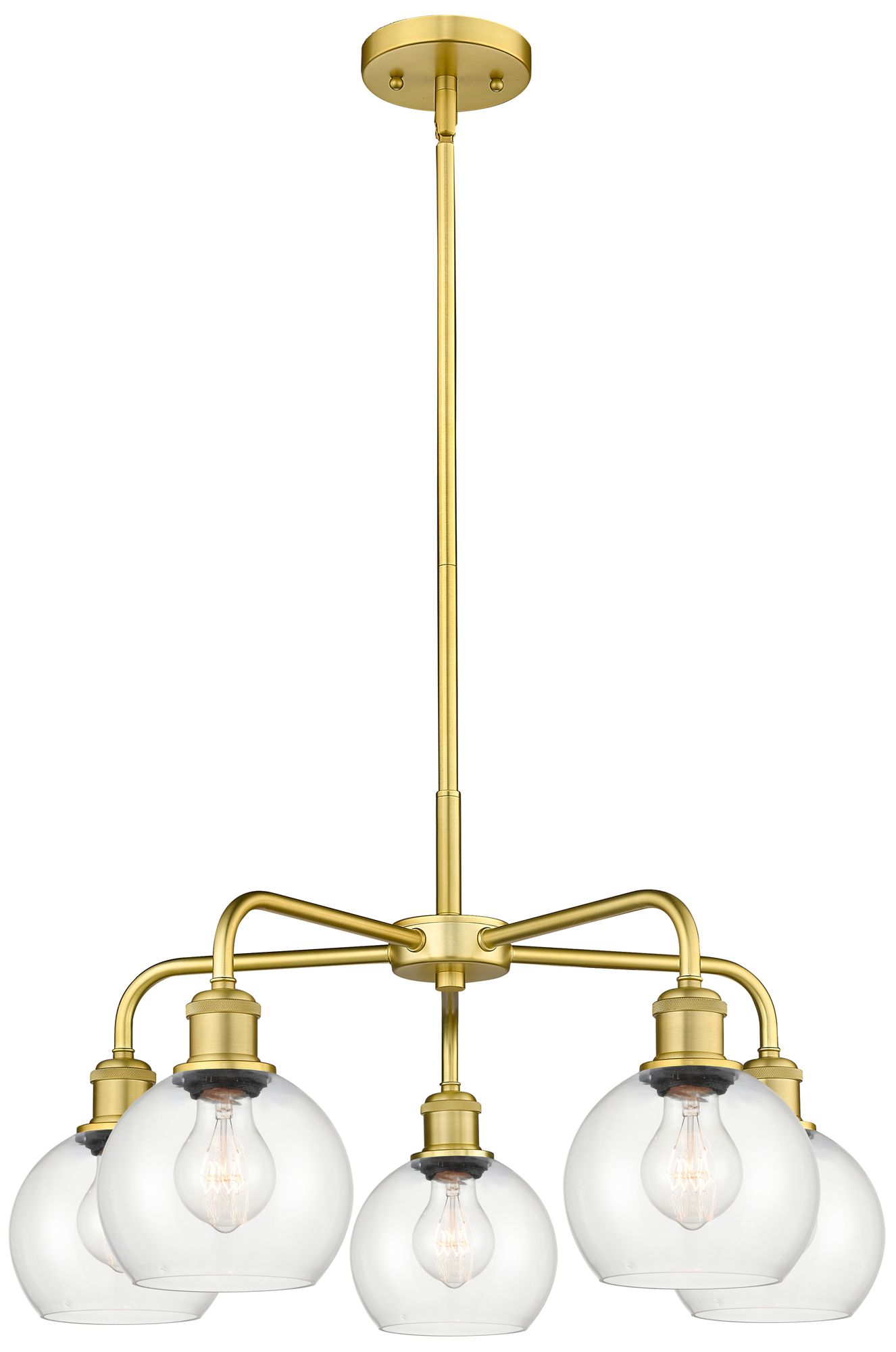 Athens 24" Wide 5 Light Satin Gold Stem Hung Chandelier With Clear Sha