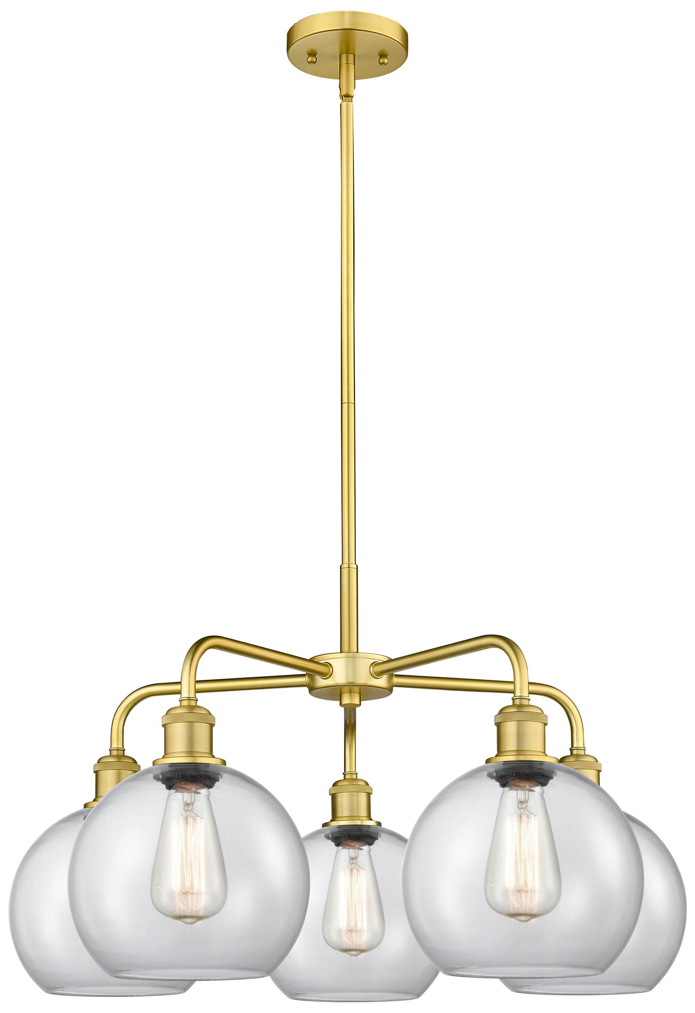 Athens 26" Wide 5 Light Satin Gold Stem Hung Chandelier With Clear Sha