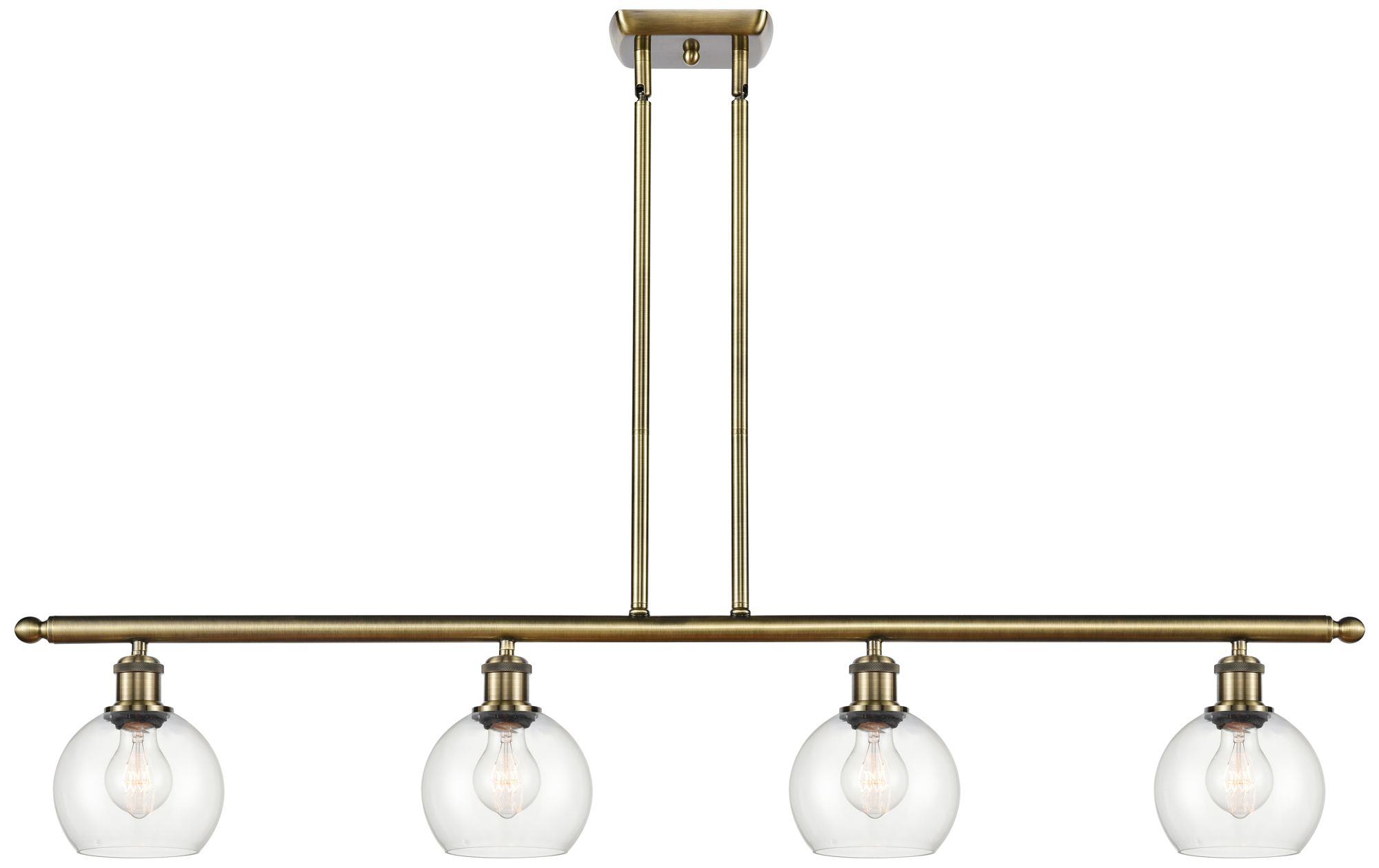 Athens 6" 4 Light 48" Island Light - Antique Brass - Clear Shade