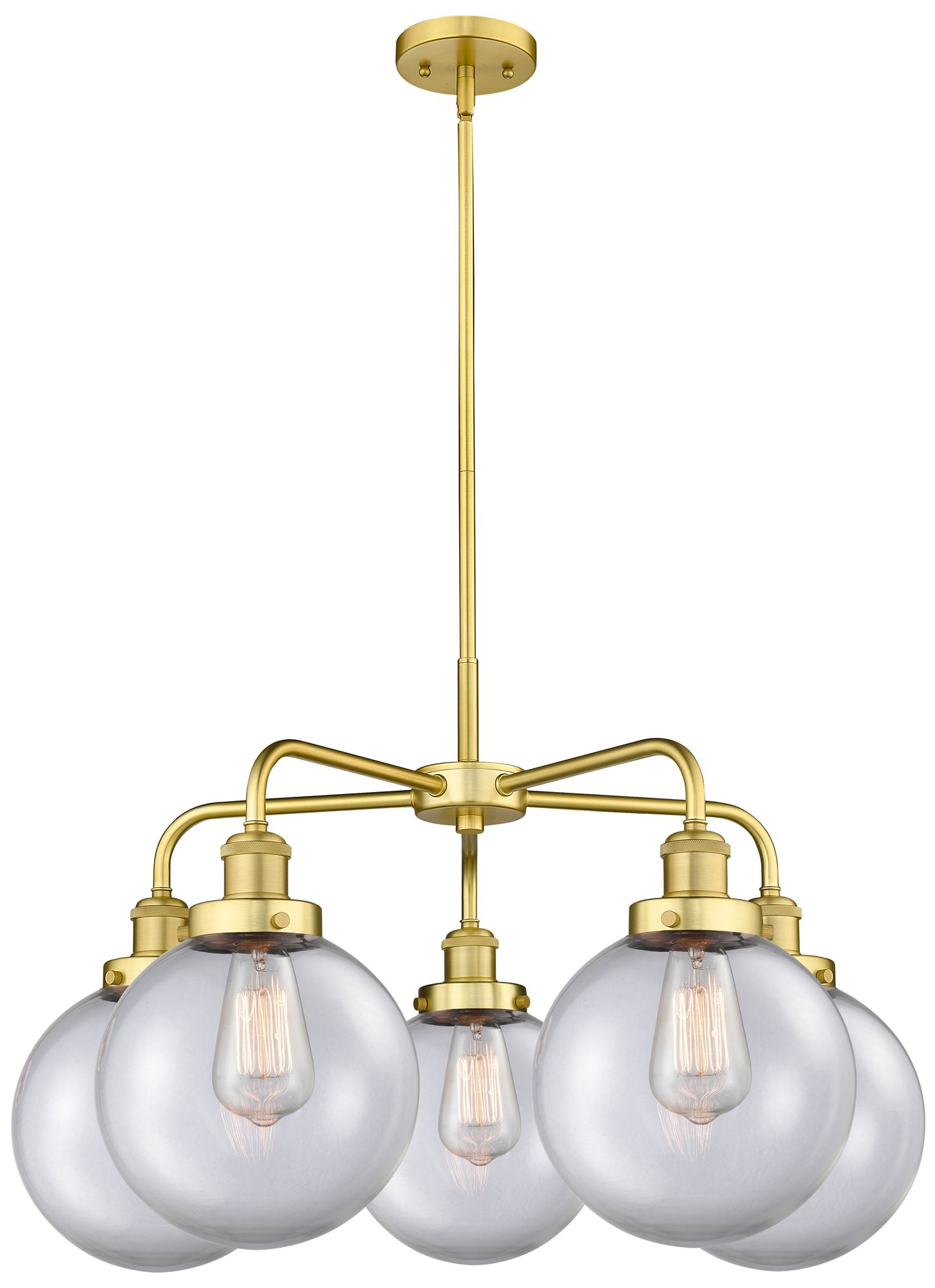 Beacon 26"W 5 Light Satin Gold Stem Hung Chandelier With Clear Glass S