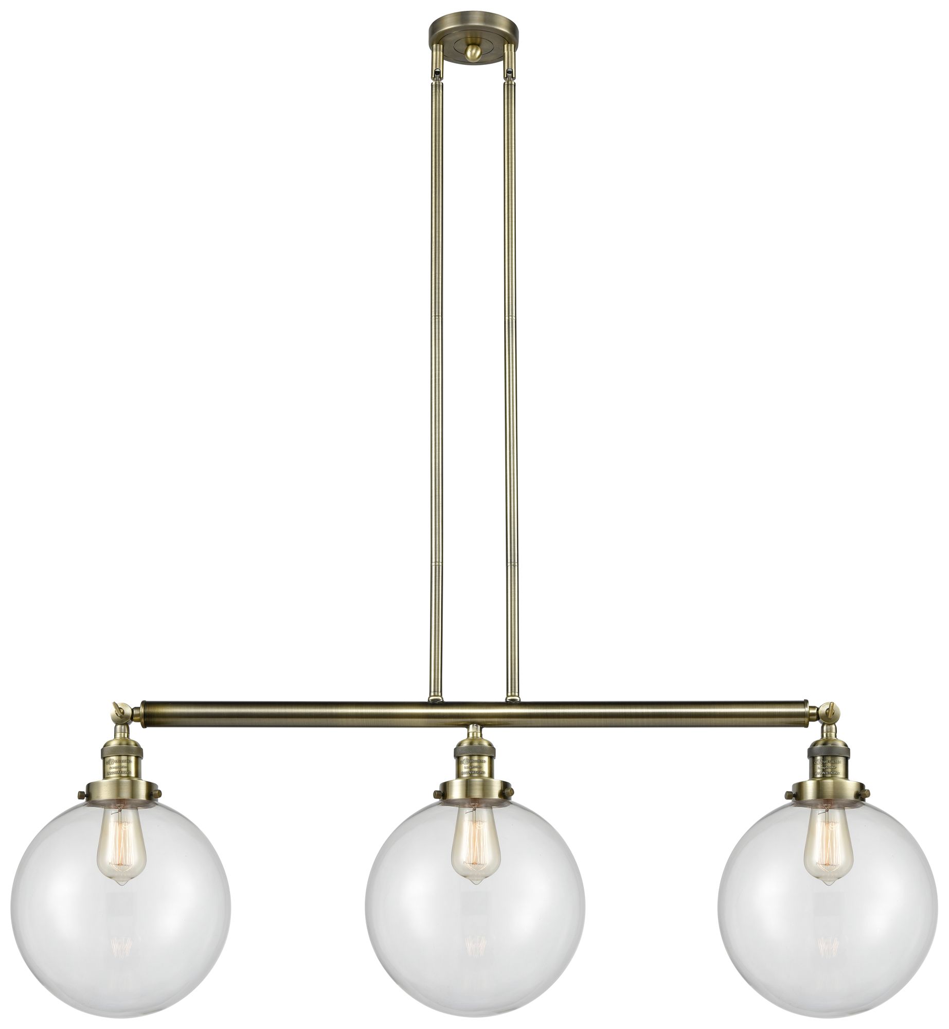 Beacon 3 Light 42" Island Light - Antique Brass - Clear Shade