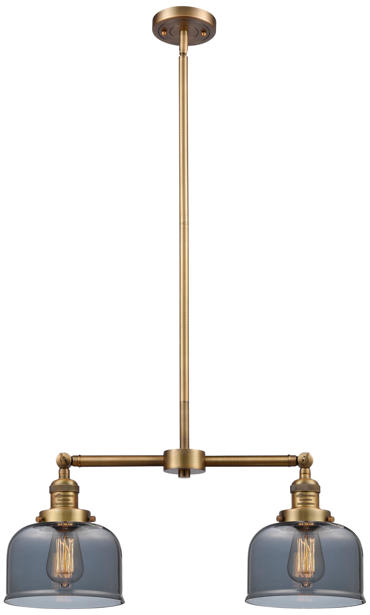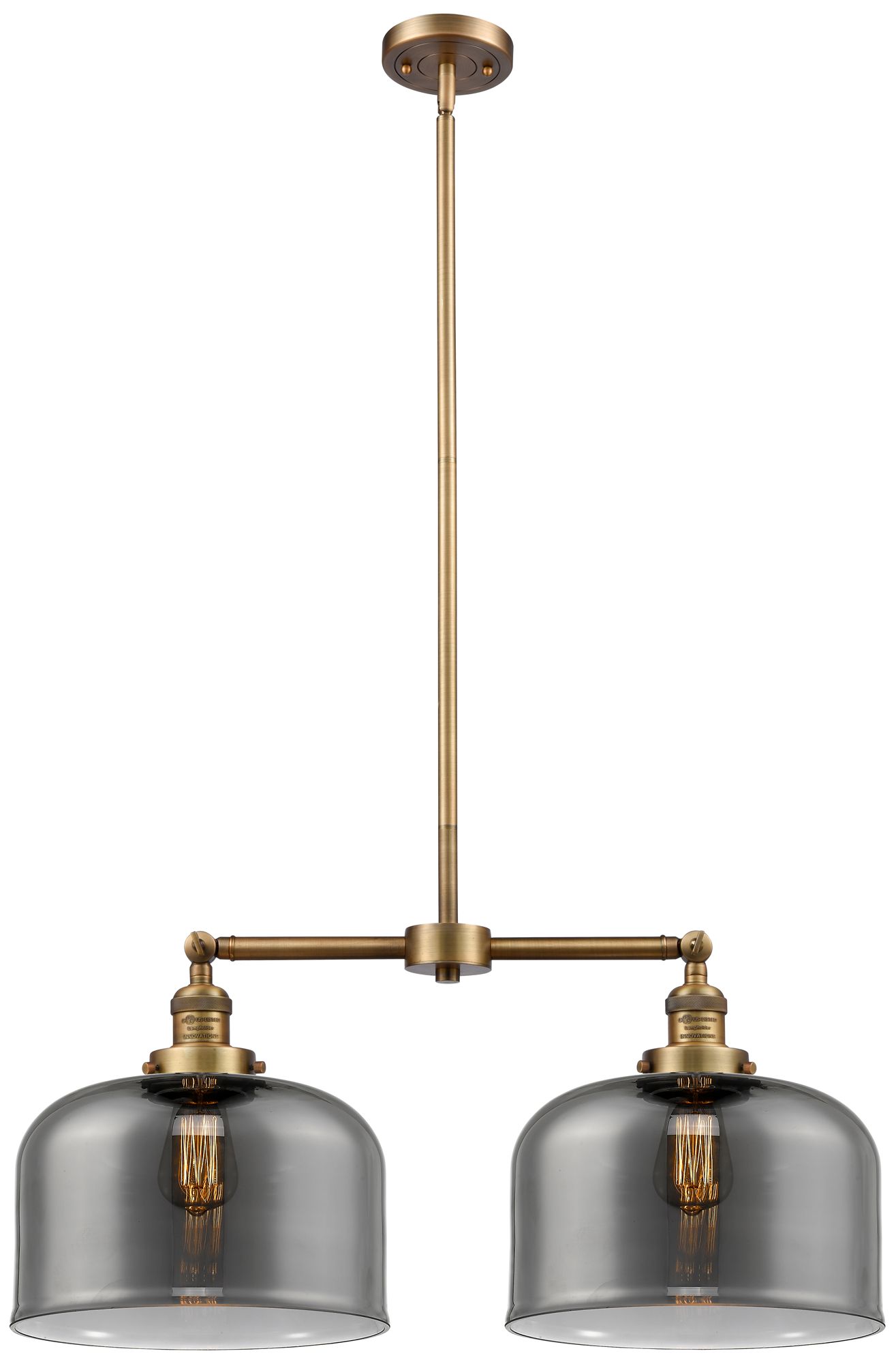 Large Bell 21" 2-Light Brushed Brass Island Light w/ Plated Smoke Shad