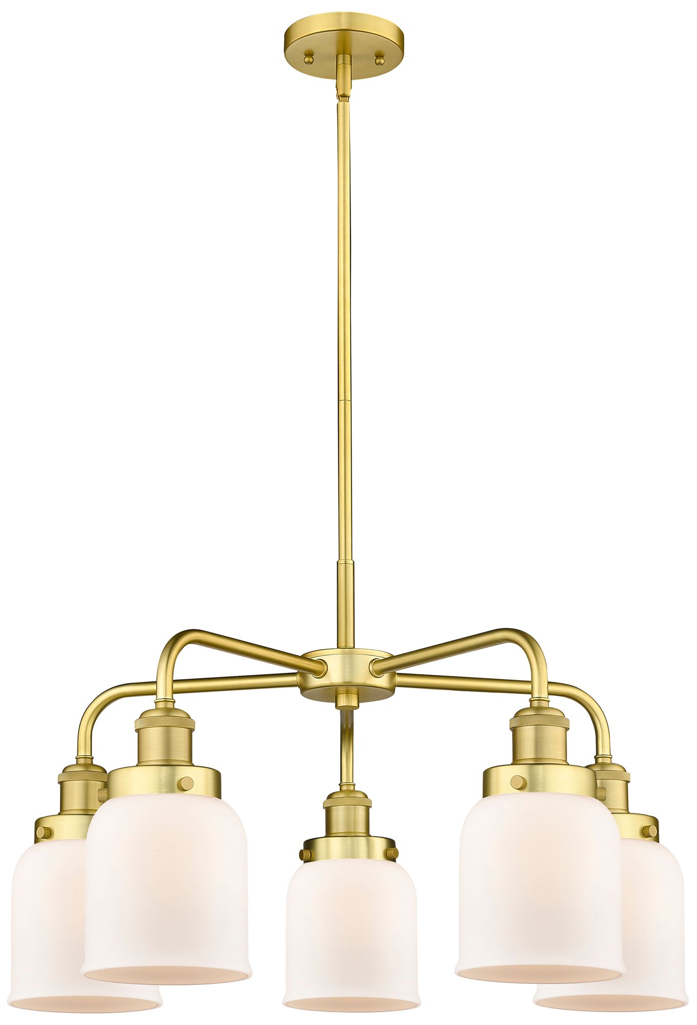 Bell 23"W 5 Light Satin Gold Stem Hung Chandelier w/ White Shade