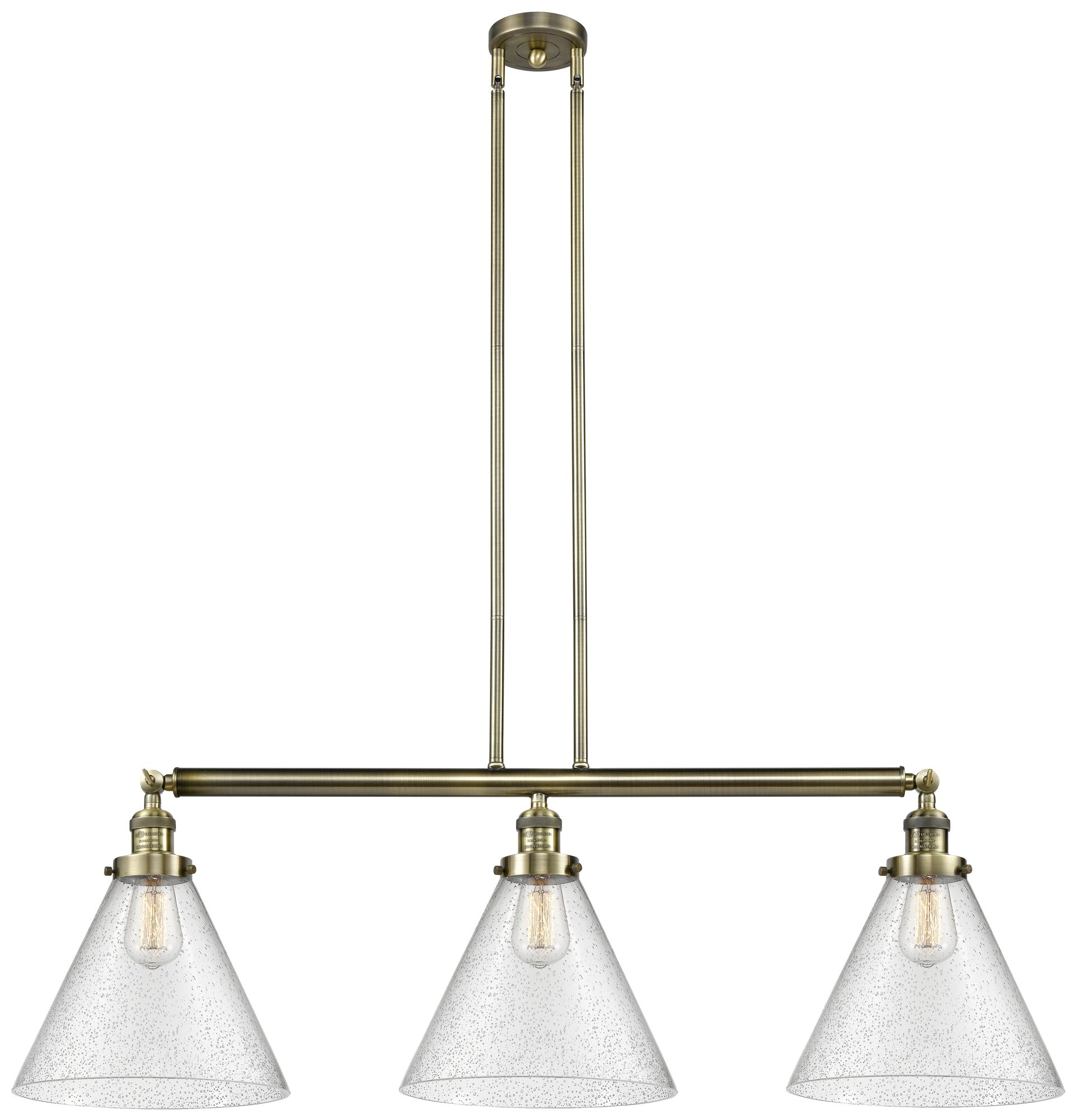 Cone 3 Light 44" LED Island Light - Antique Brass - Seedy Shade