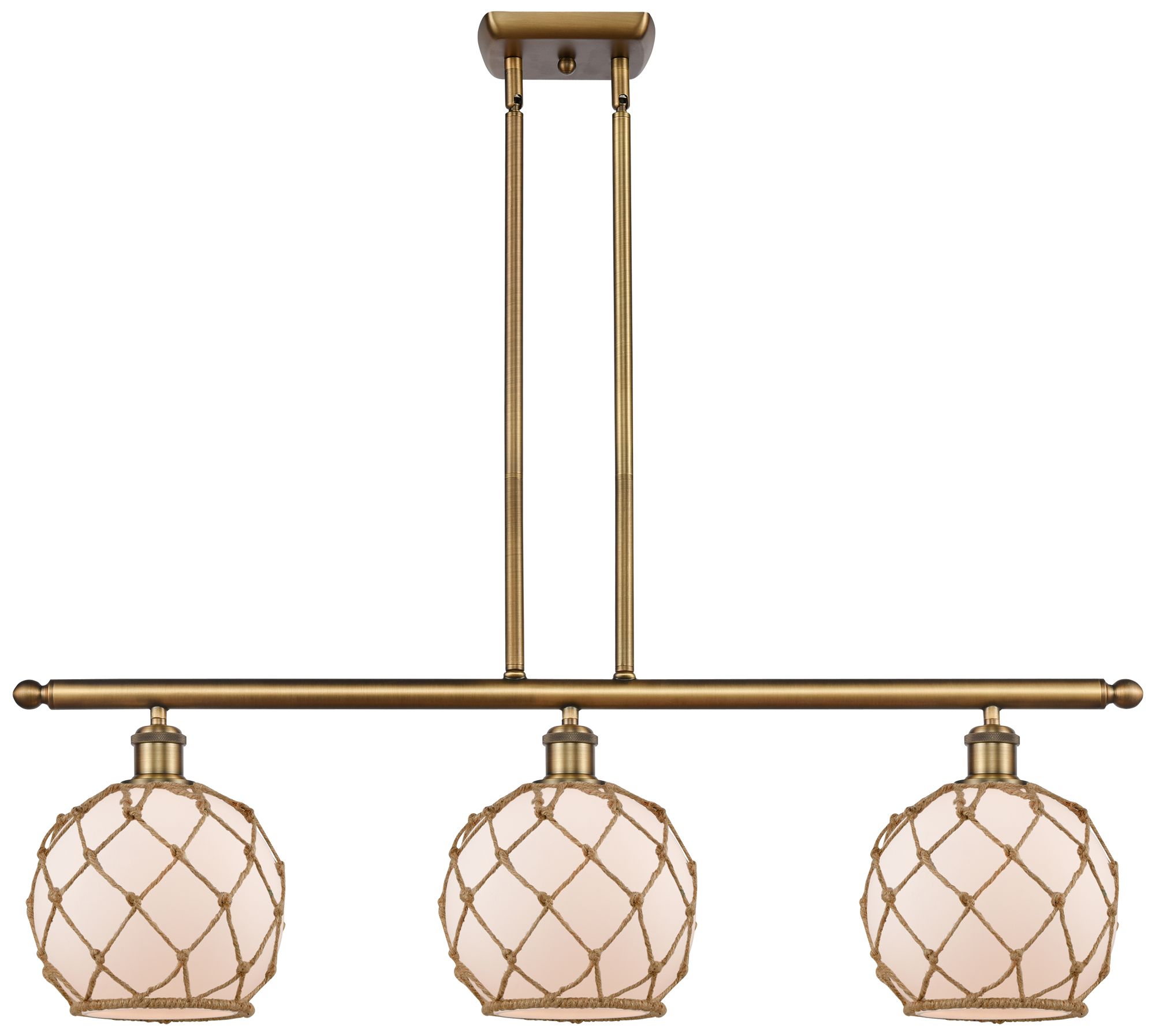 Farmhouse 36"W 3 Light Brushed Brass Island Light w/ White and Brown S