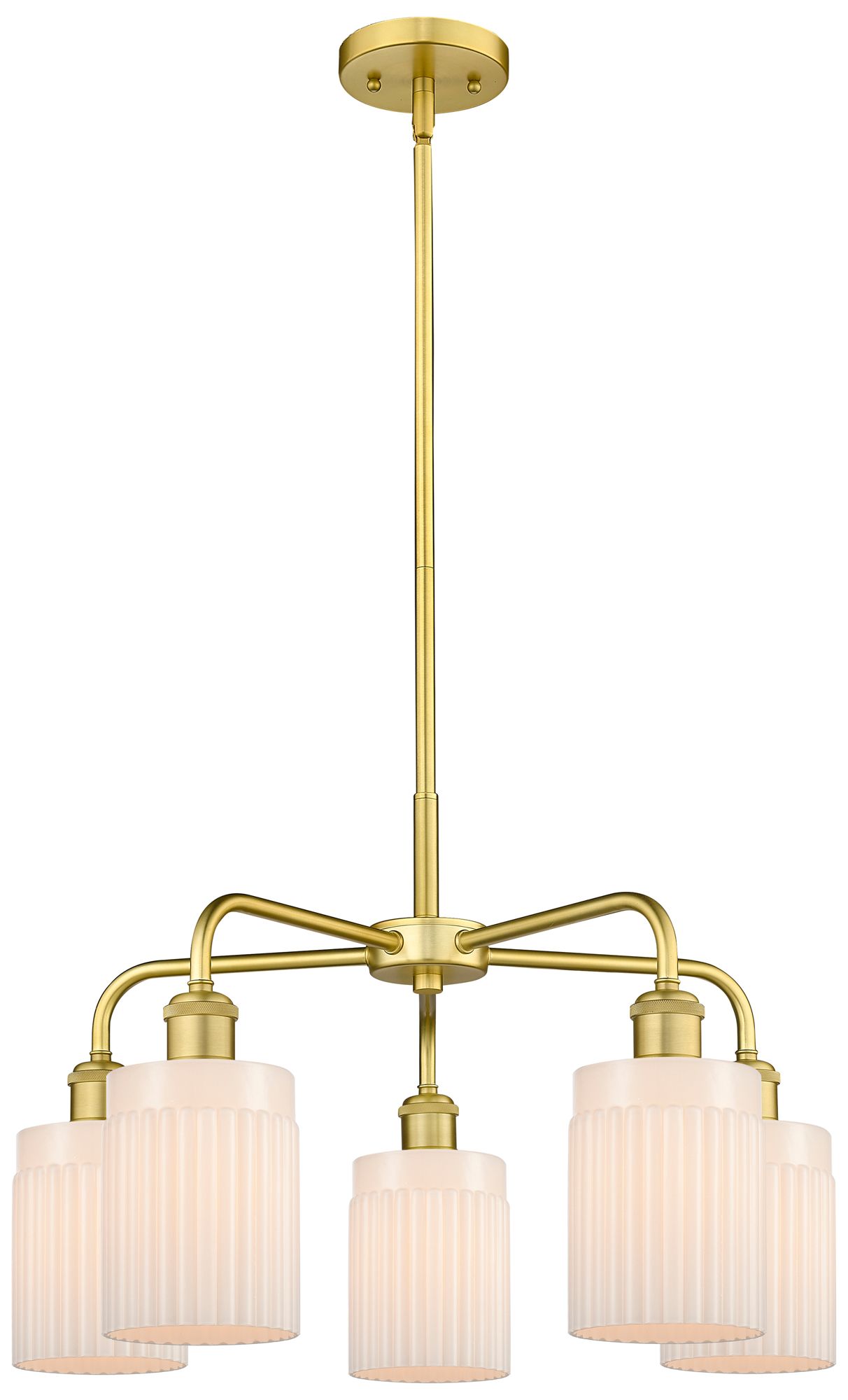 Hadley 22.5"W 5 Light Satin Gold Stem Hung Chandelier With White Shade