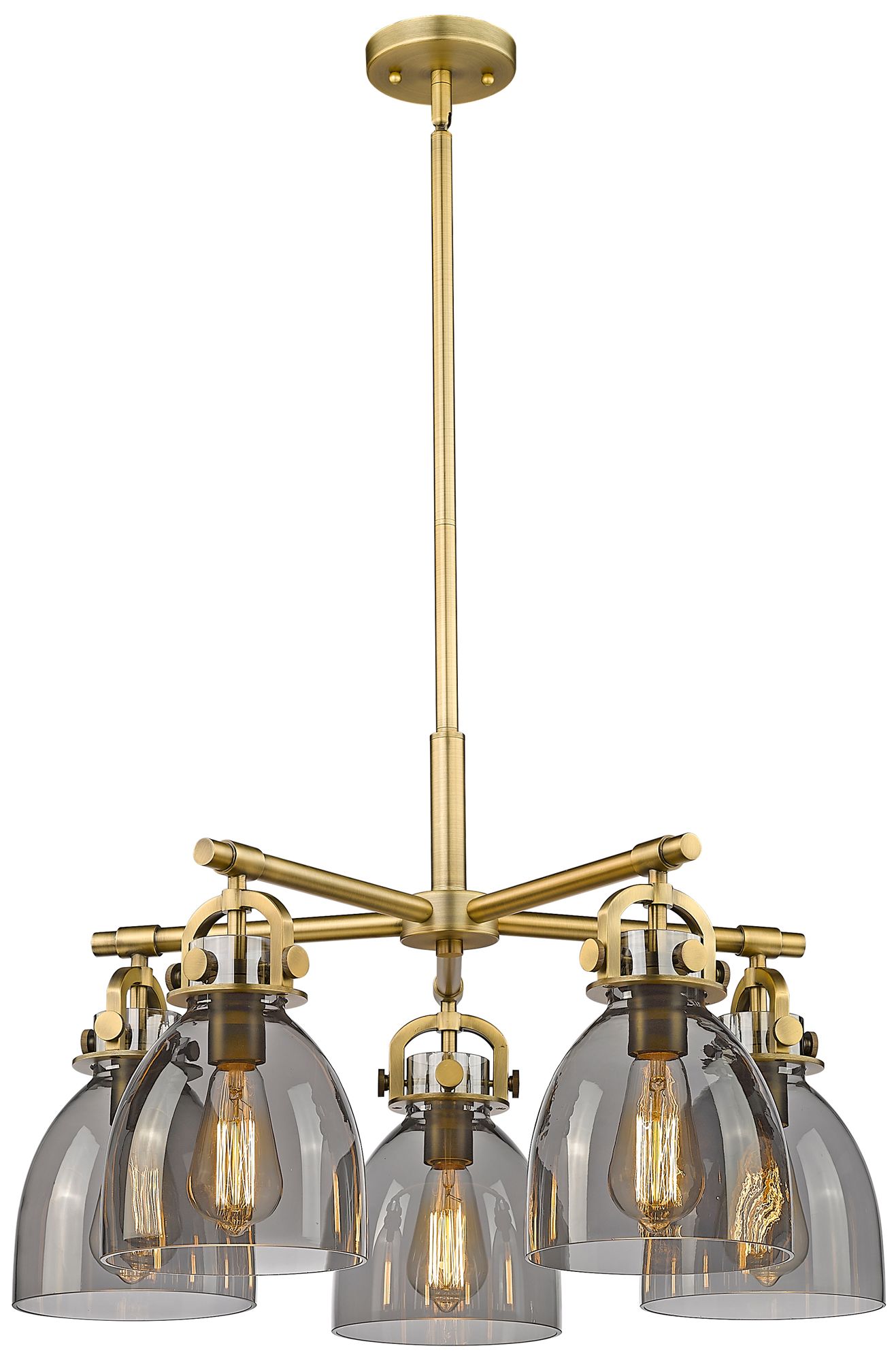 Newton Bell 26"W 5 Light Brushed Brass Stemmed Chandelier w/ Smoke Sha