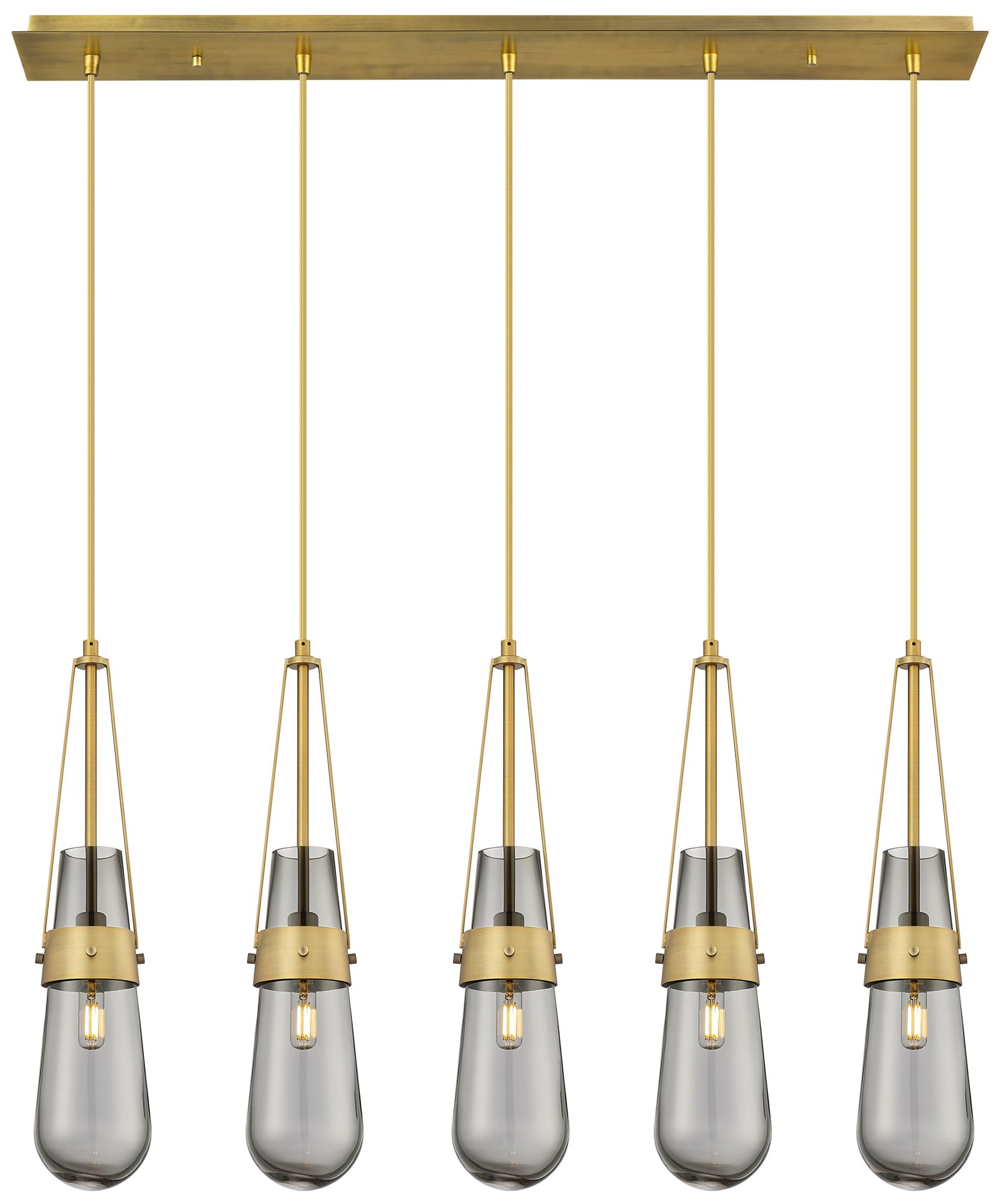 Newton Bell 39.75"W 5 Light Brushed Nickel Linear Pendant w/ Smoke Sha