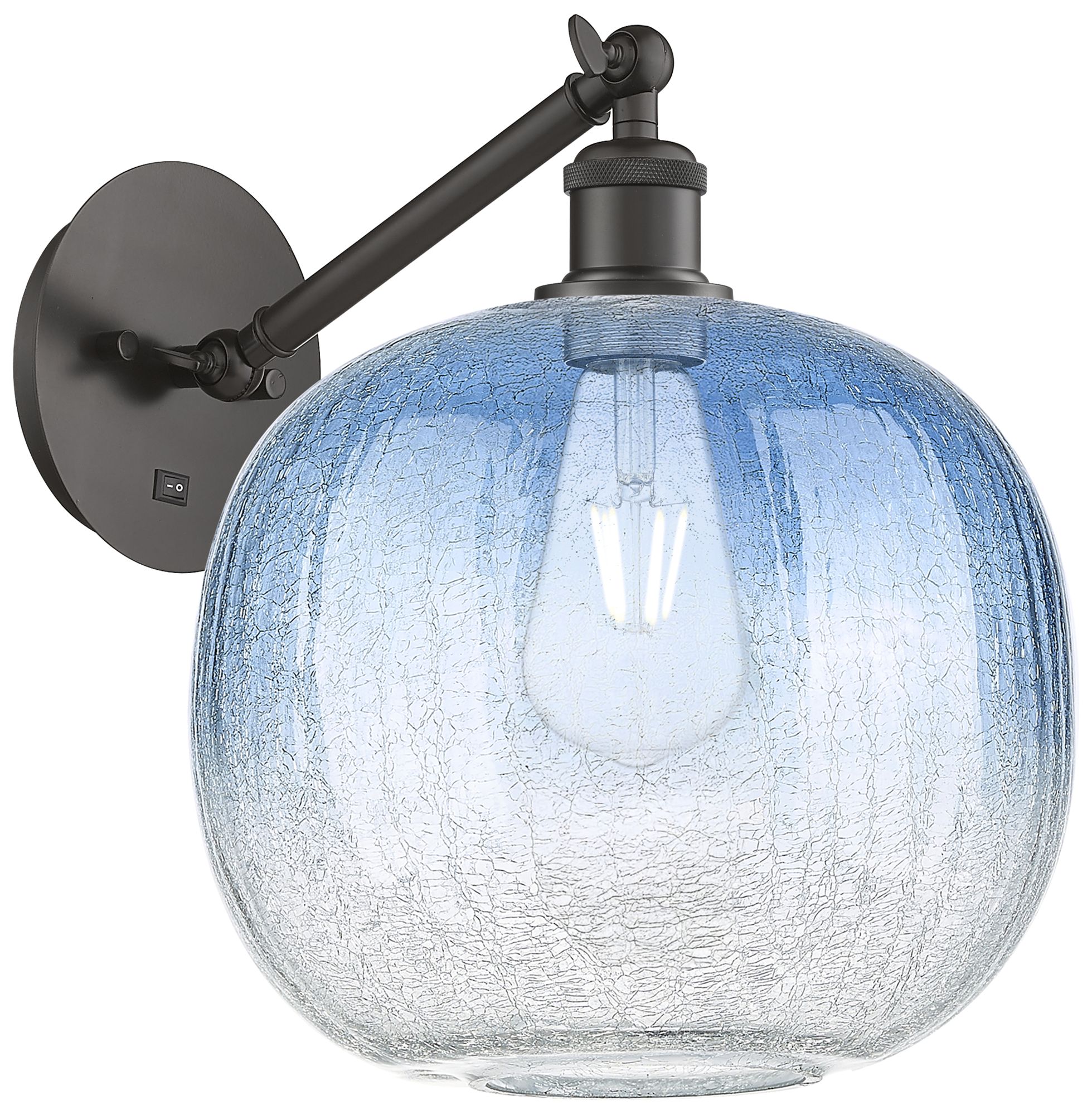 Ballston Brookhaven Sphere 12"H Oiled Bronze Swivel Sconce w/ Blue Shade