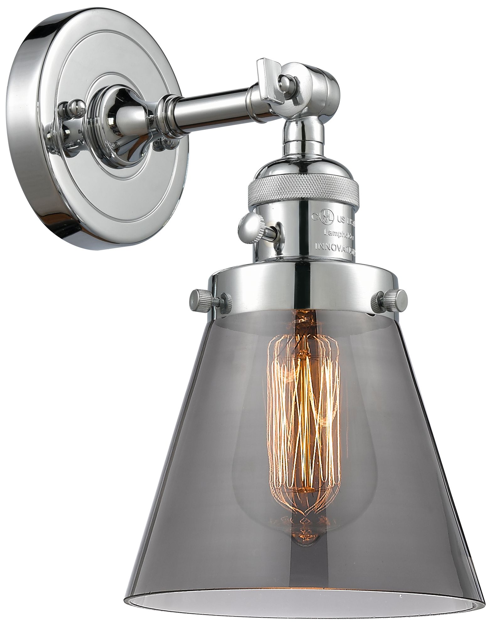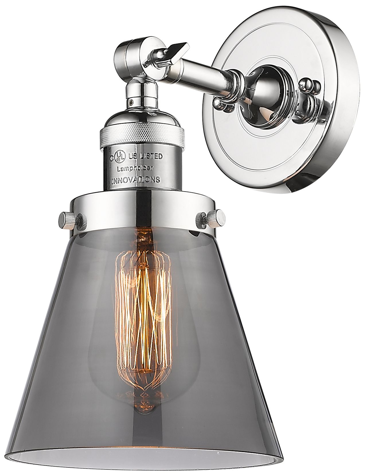 Franklin Restoration Small Cone 6" Chrome Sconce w/ Smoke Shade