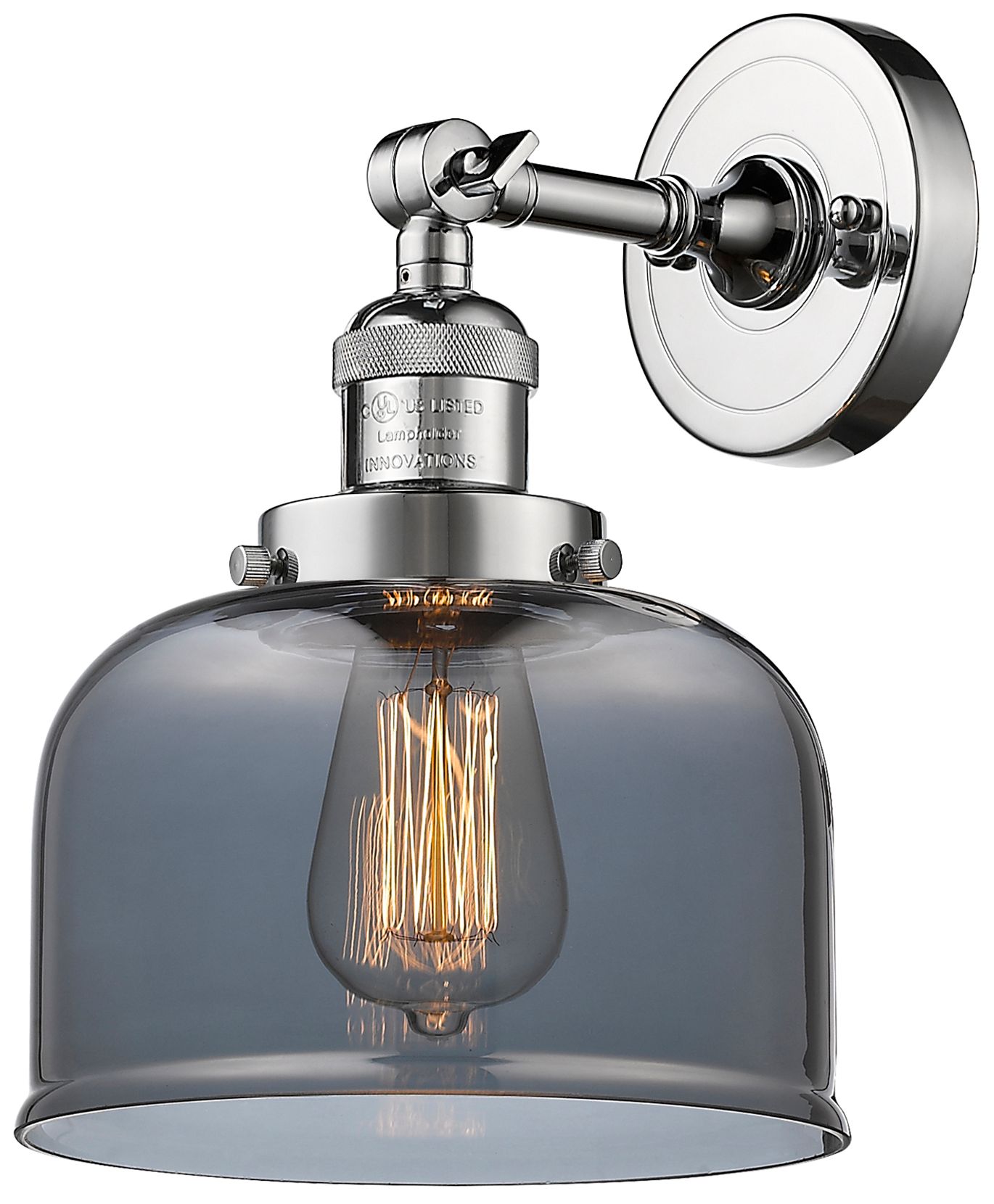Franklin Restoration Large Bell 8" Chrome Sconce w/ Smoke Shade
