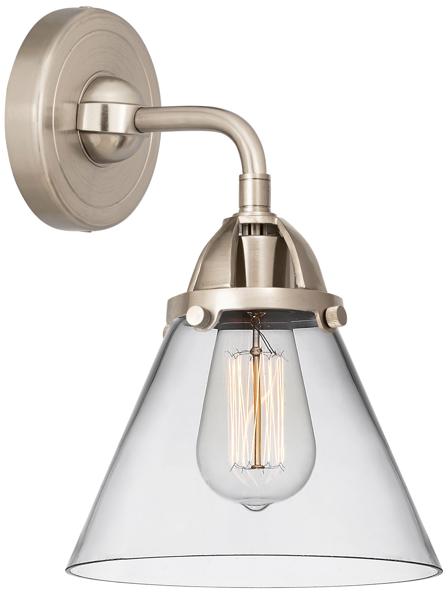 Nouveau 2 Cone 8" Incandescent Sconce - Nickel Finish - Clear Shade