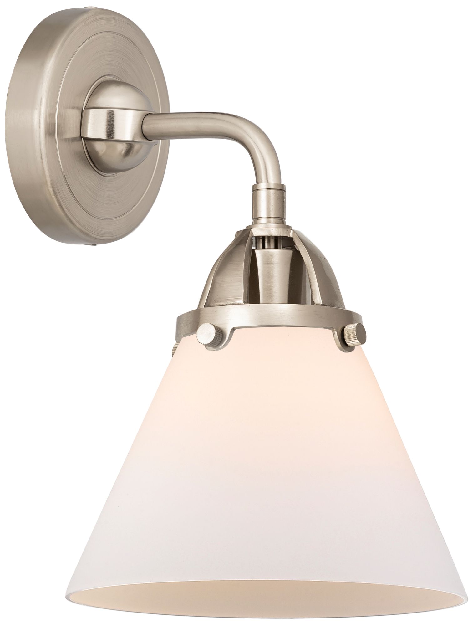 Nouveau 2 Cone 8" Incandescent Sconce - Nickel Finish - Matte White Sh