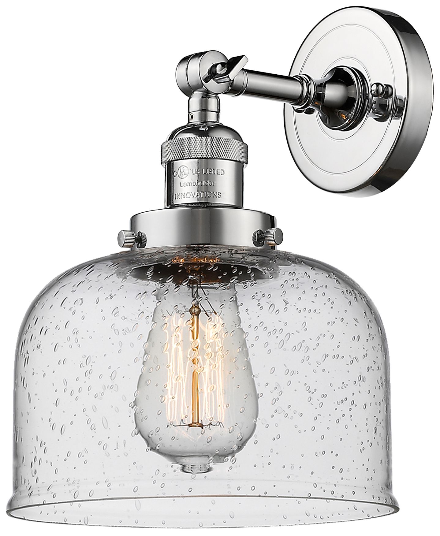 Franklin Restoration Large Bell 8" Polished Chrome Sconce w/ Seedy Sha