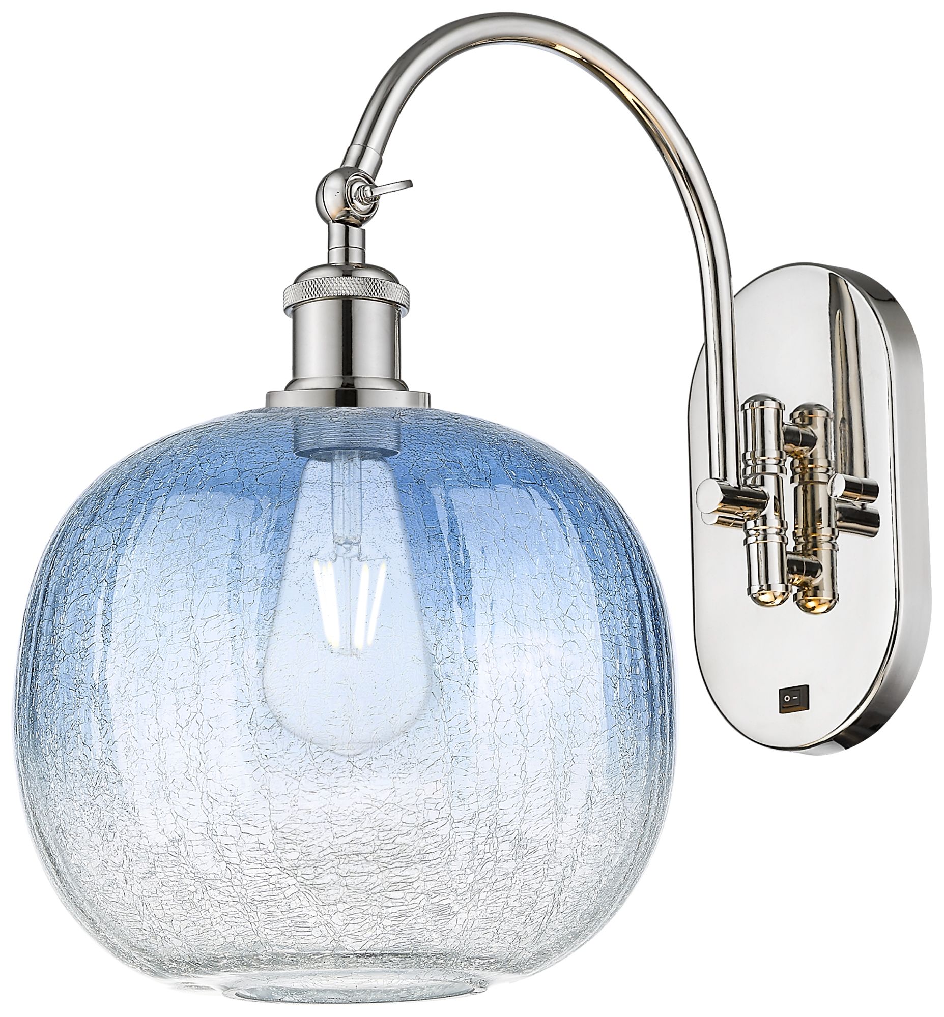 Ballston Brookhaven Globe 10"H Polished Nickel Swivel Sconce w/ Blue Shade