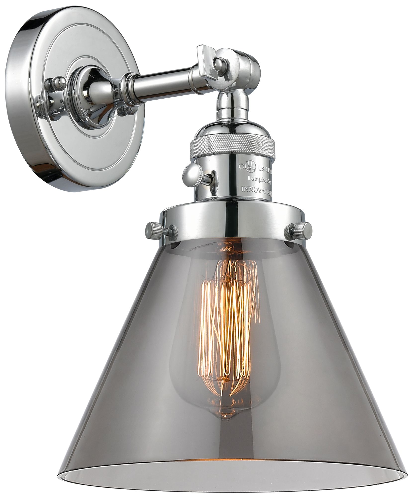 Cone 8" Polished Chrome Sconce w/ Plated Smoke Shade