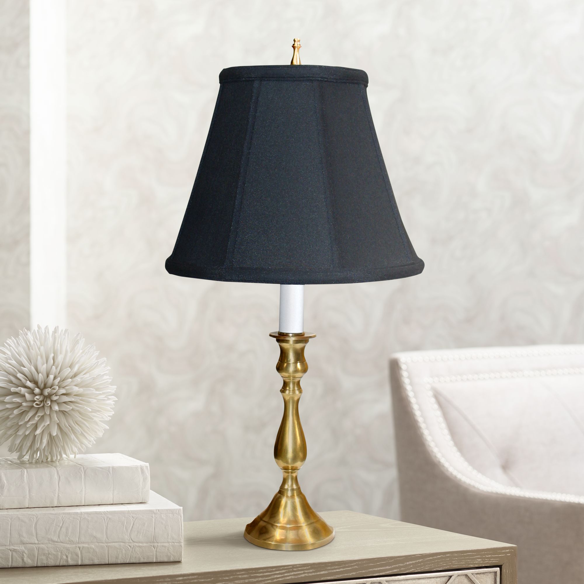 Brass and Black Shade 19" High Traditional Candlestick Lamp