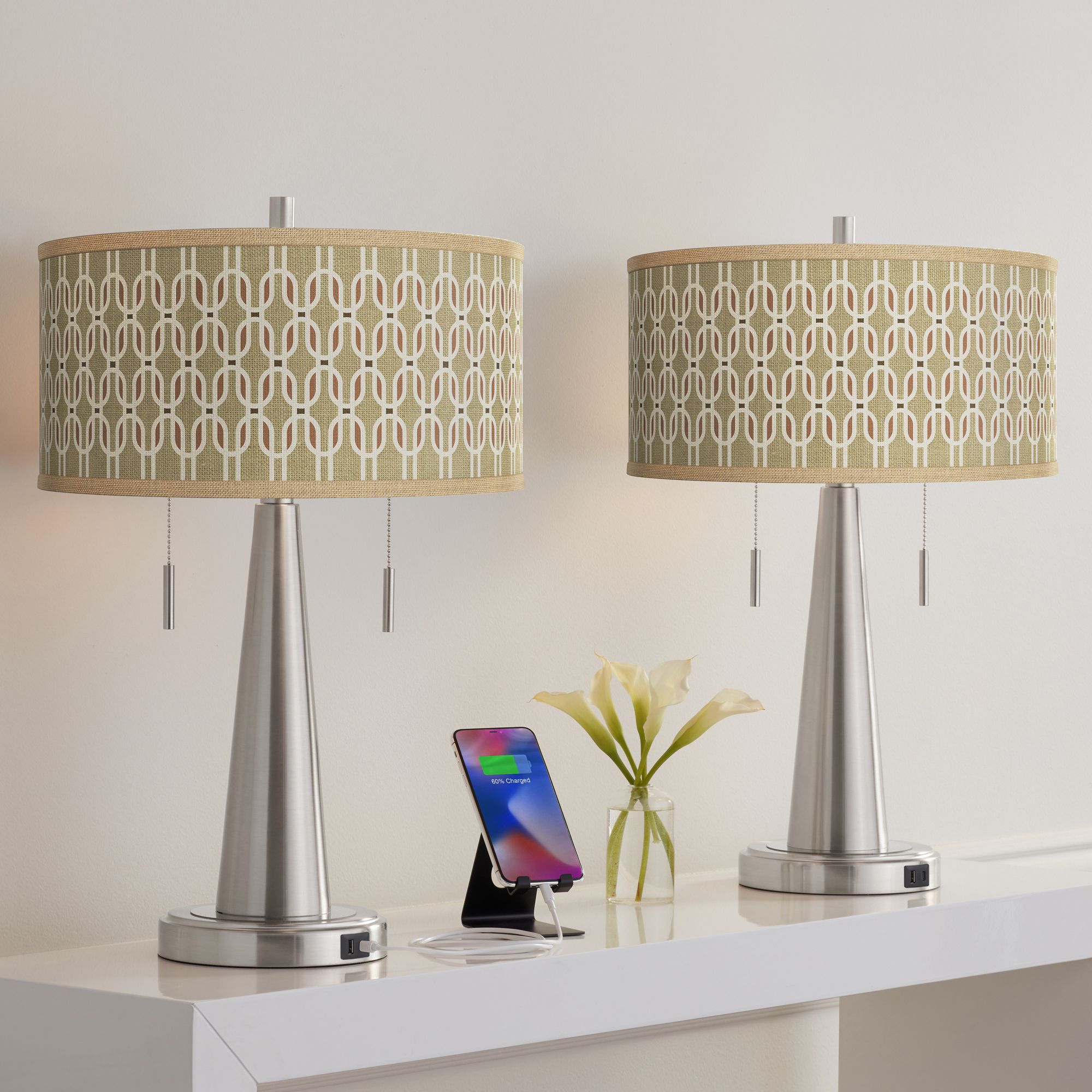 Rustic Mod Vicki Brushed Nickel USB Table Lamps Set of 2