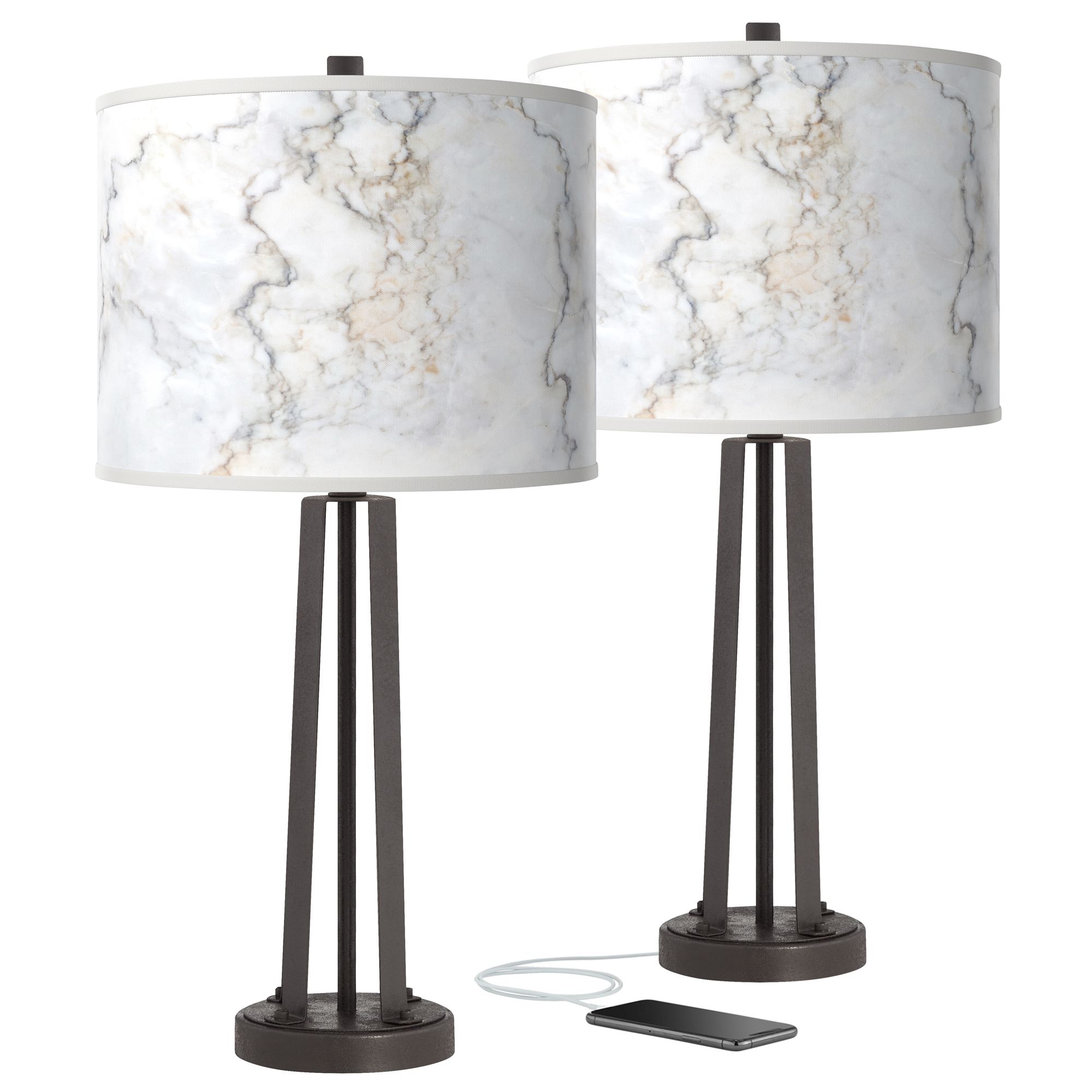 Giclee Glow Susan 25 1/2" Marble Pattern Shades USB Lamps Set of 2