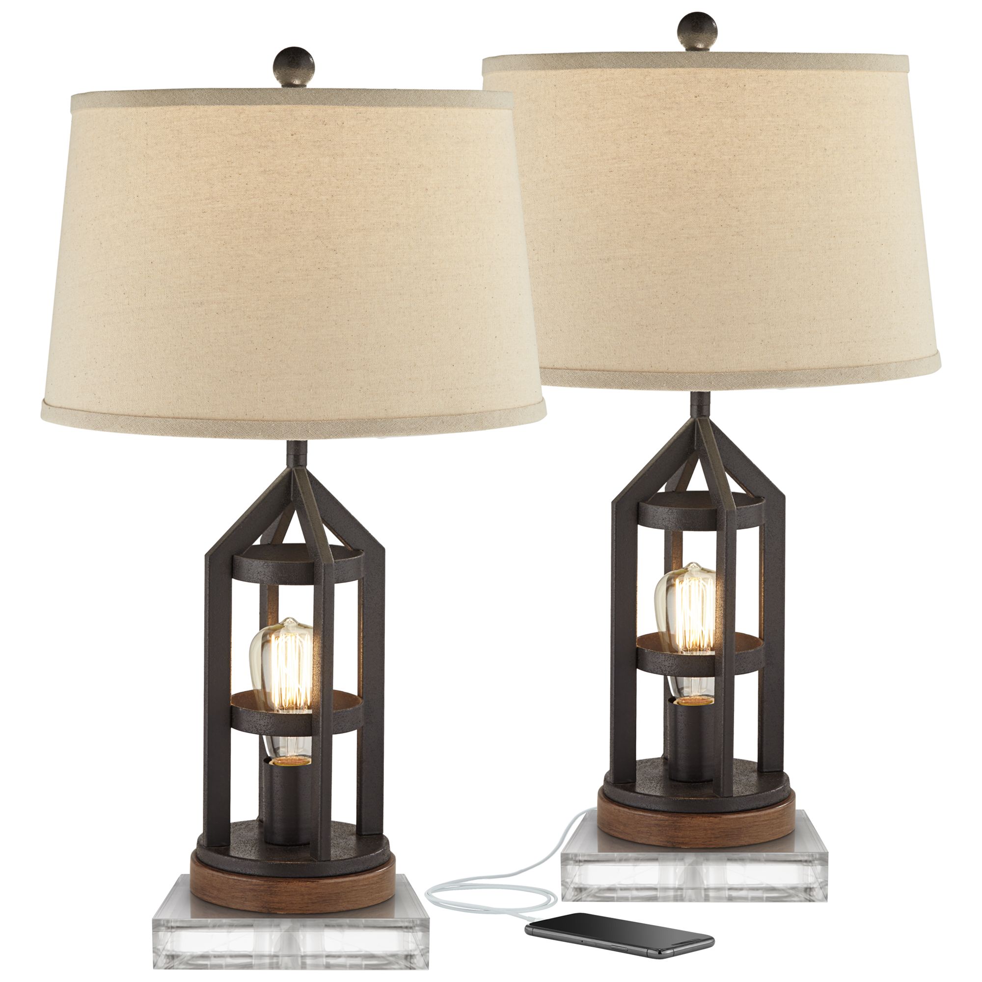 Lucas Bronze Night Light USB Table Lamps With 8" Square Risers