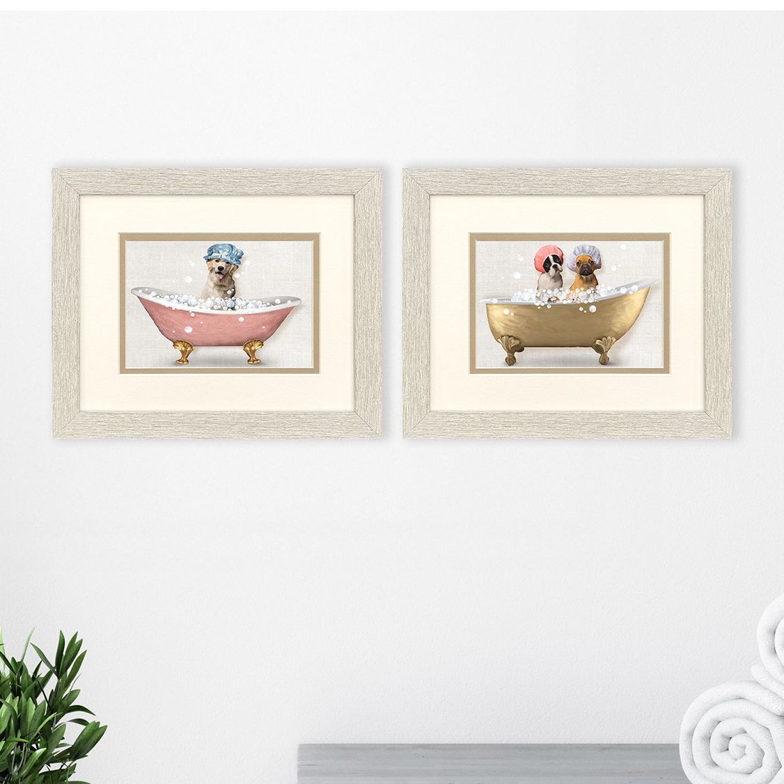Bath Dogs II 11"W x 9"H Framed Art - Set of 2