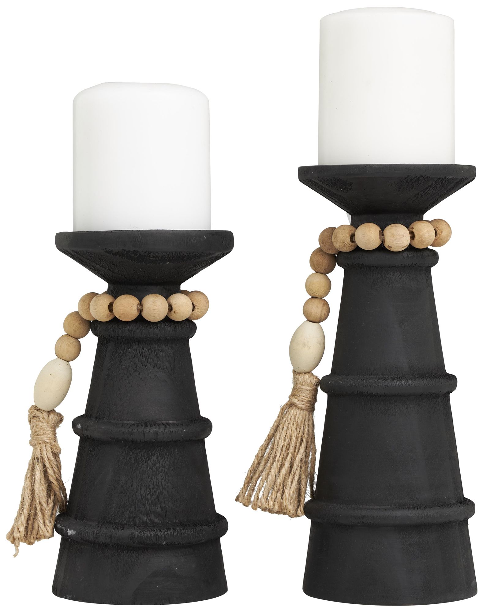 Black Wood Handmade Matte Decorative Candle Holder, Set of 2 10", 8"H