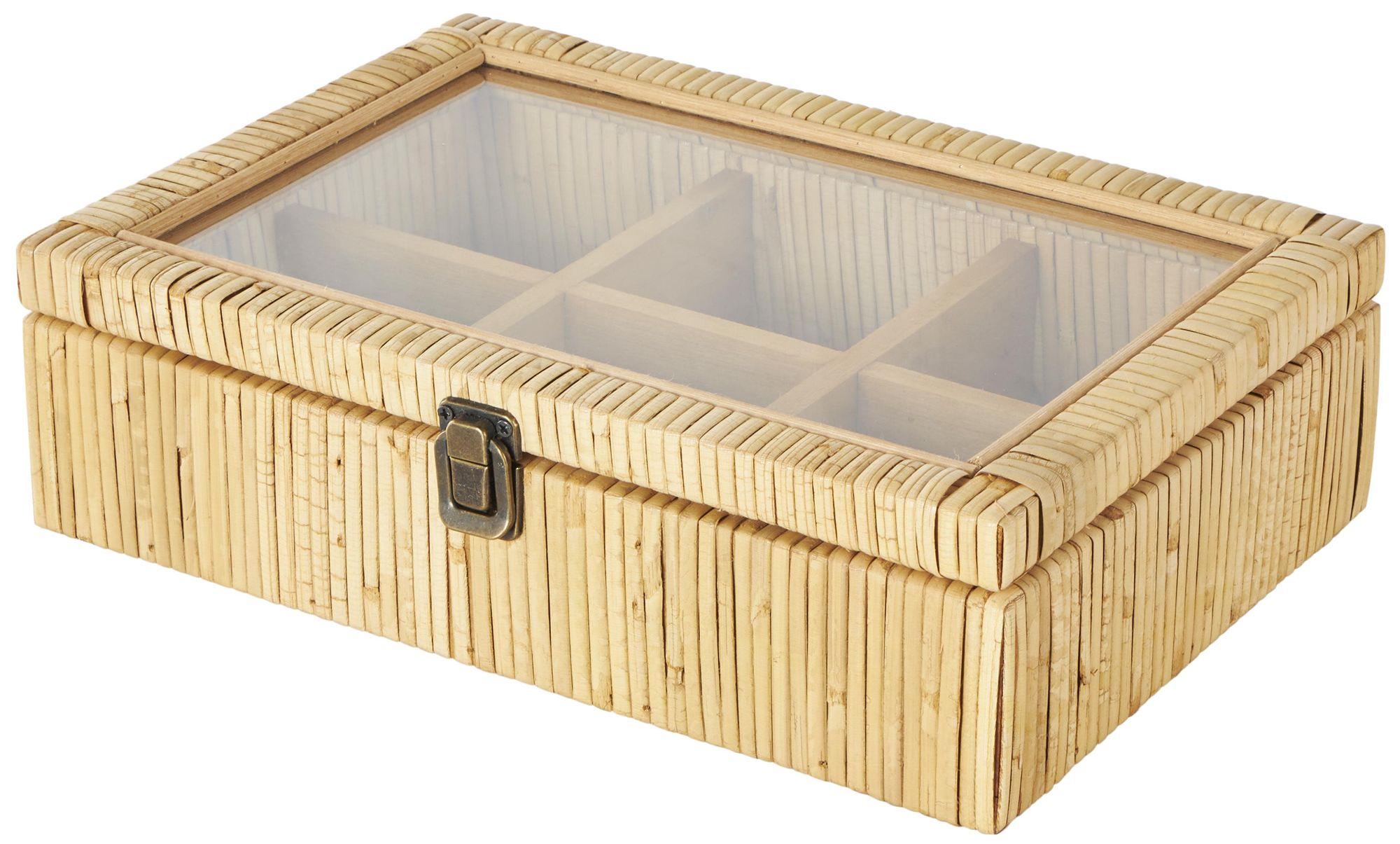 Brown Rattan Farmhouse Jewelry Box, 12" x 9" x 4"