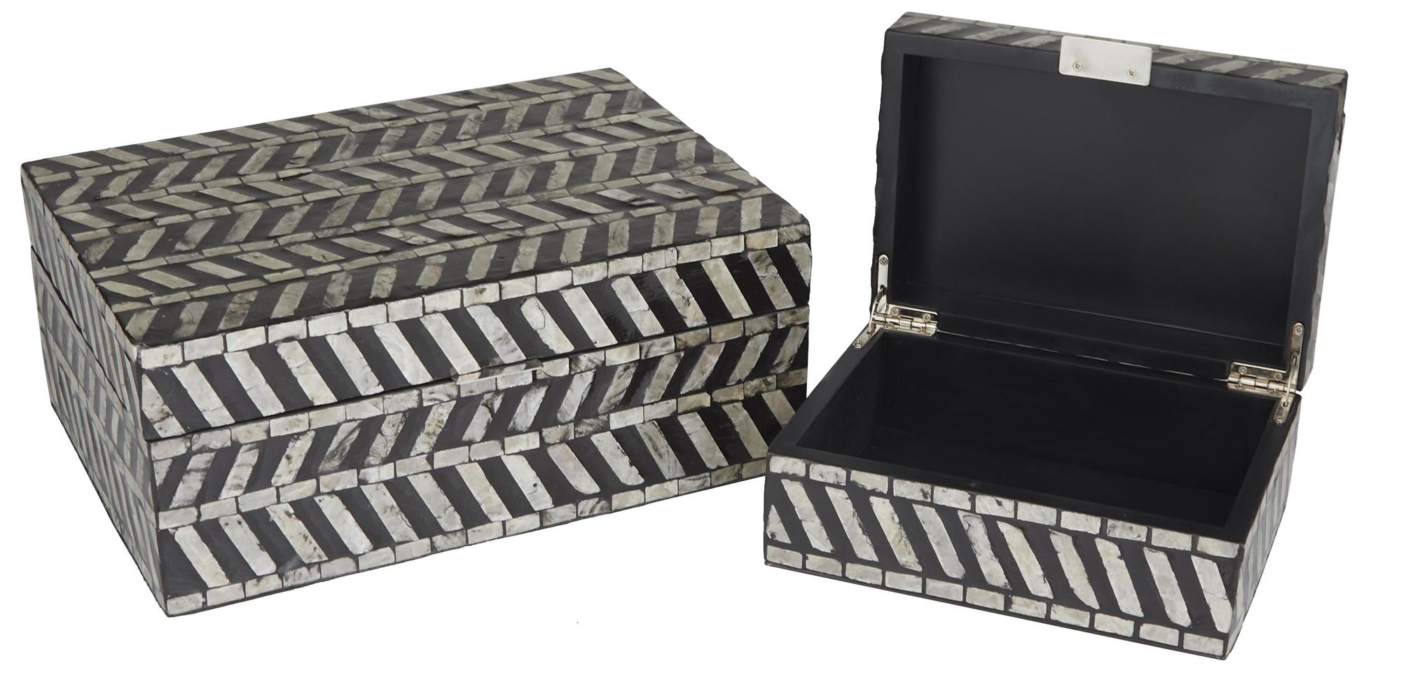 Gray Shell Handmade Chevron Pattern Decorative Box, Set of 2 12", 8"W