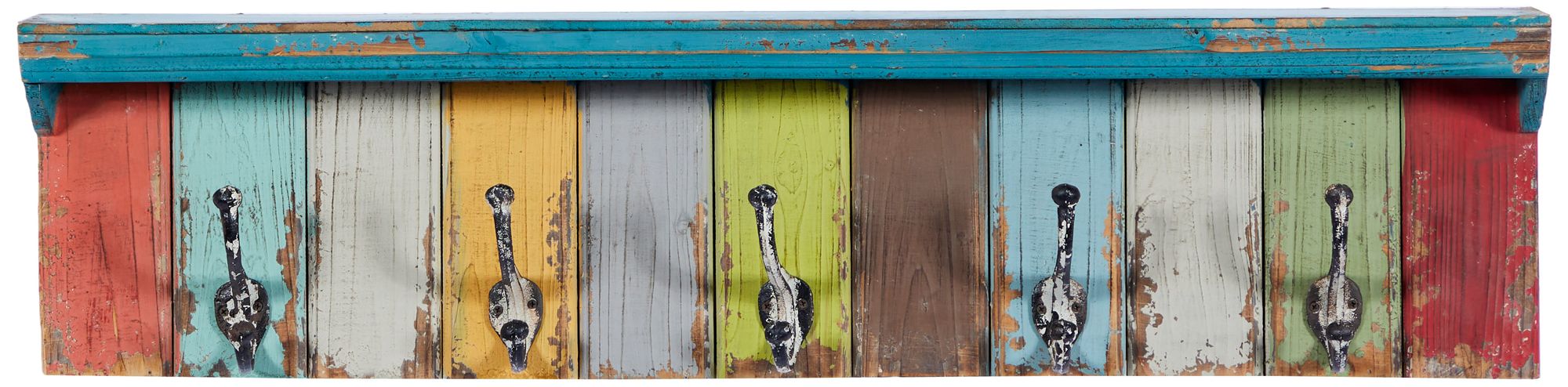 Multi Colored Wood Coastal Wall Hook, 35" x 5" x 9"