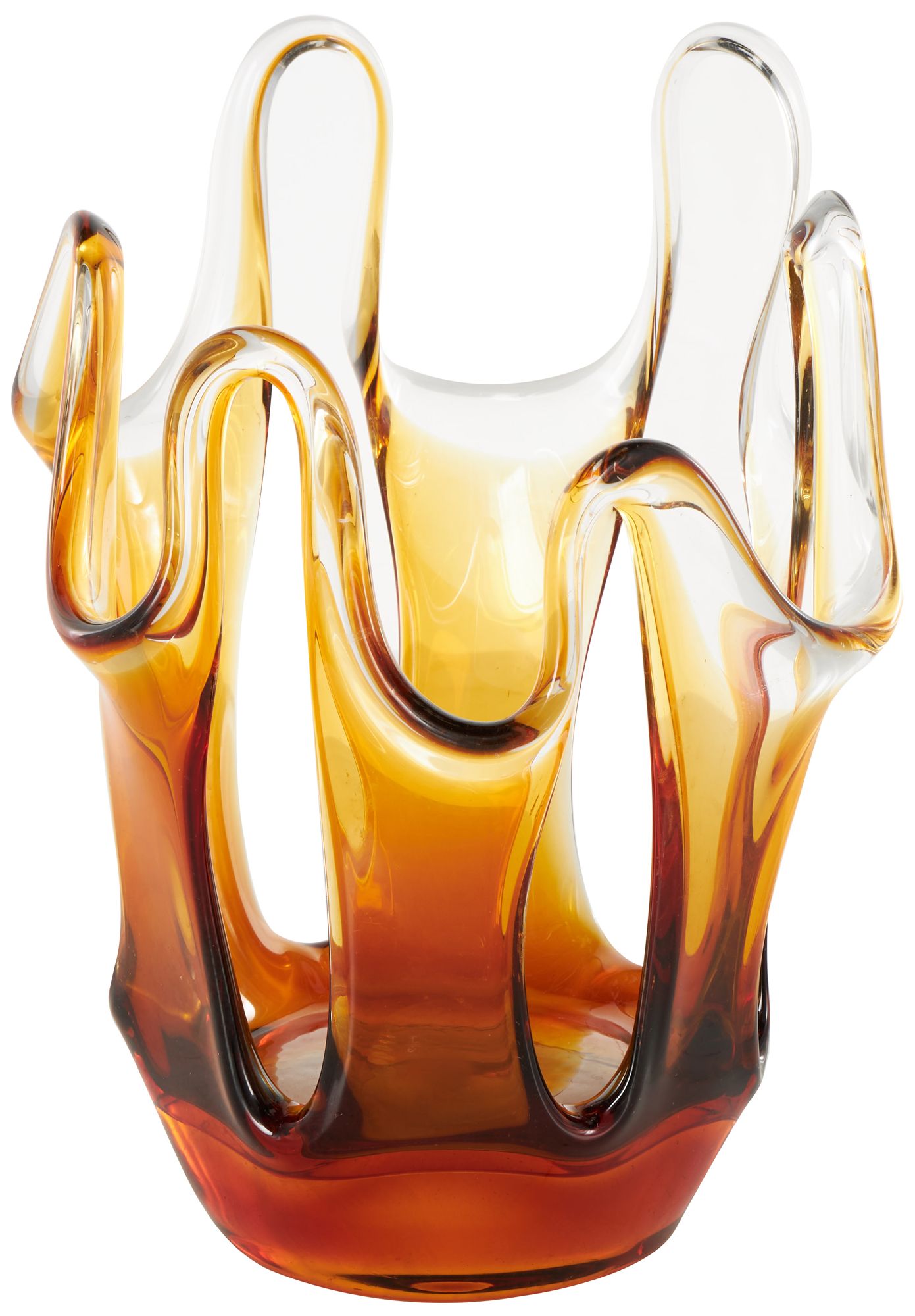 Orange Glass Eclectic Vase, 9" x 8" x 12"