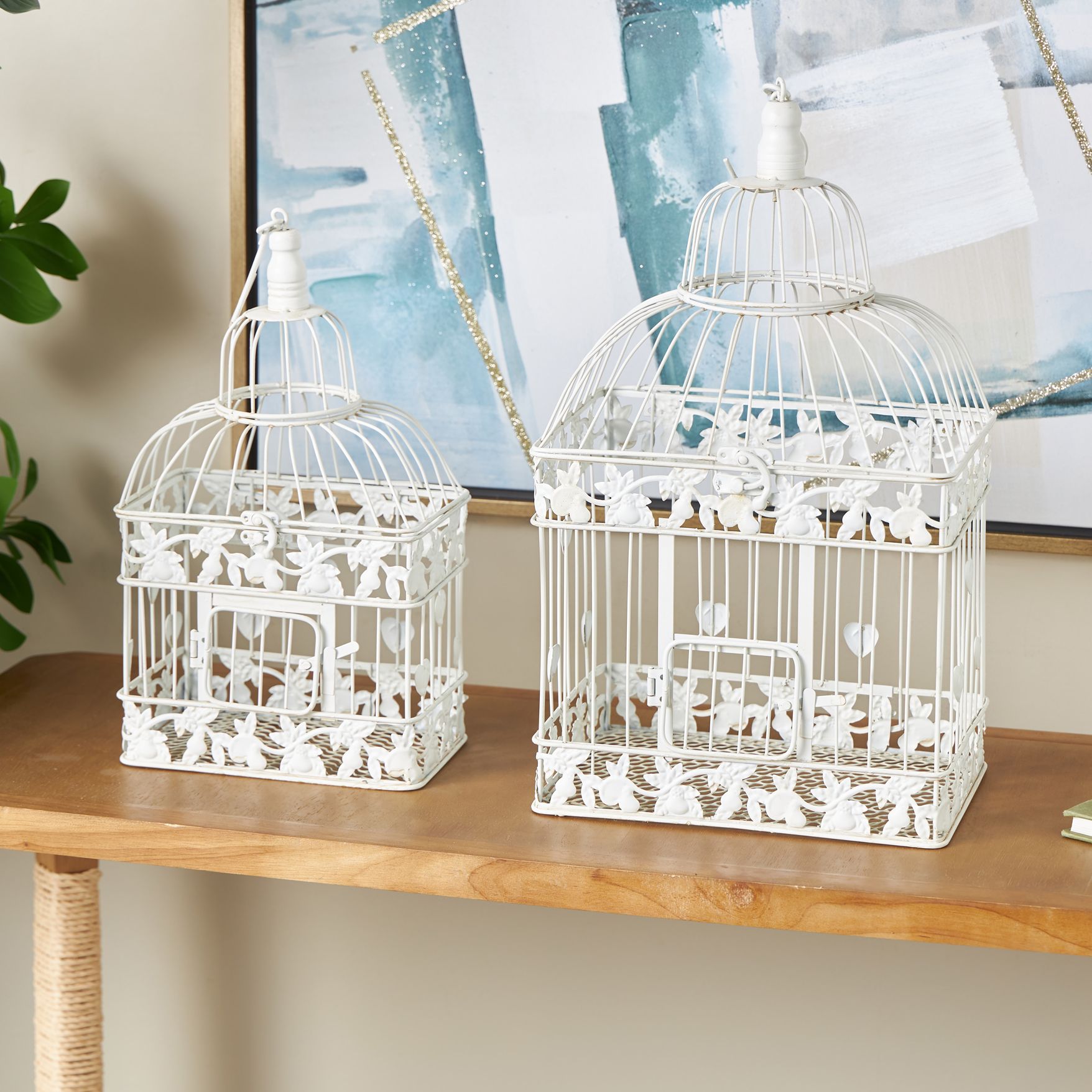White Metal Vintage Birdcage, S/2 22", 15"H