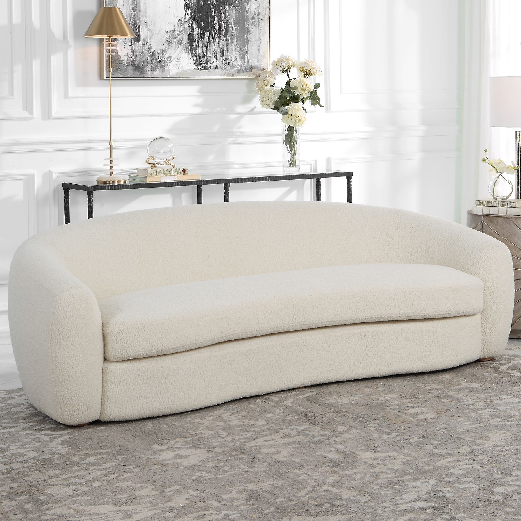 Uttermost Capra 90" Wide Off White Shearling Sofa