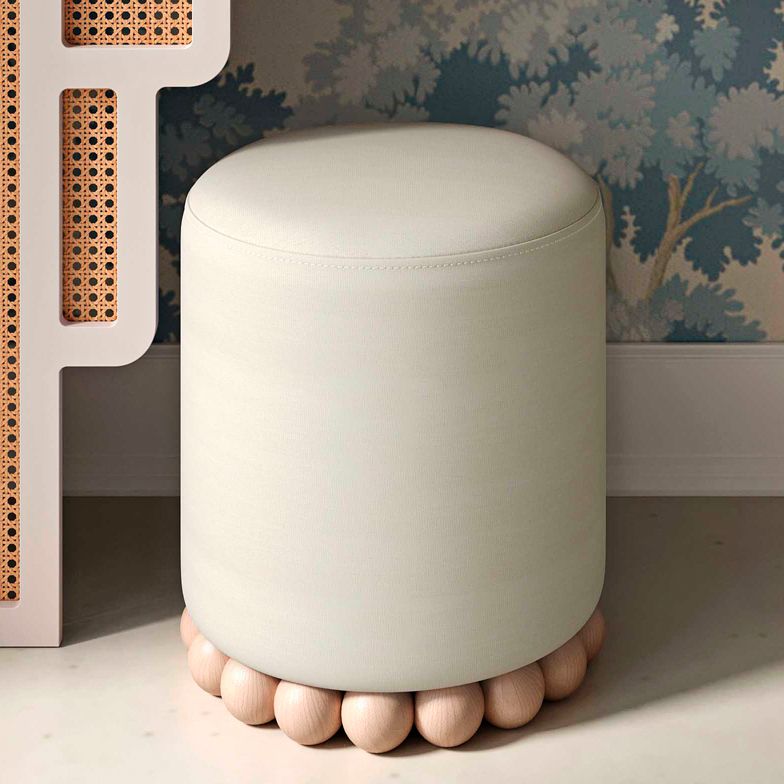 TOV Dex 15 3/4" Wide Cream Upcycled Fabric Modern Round Ottoman